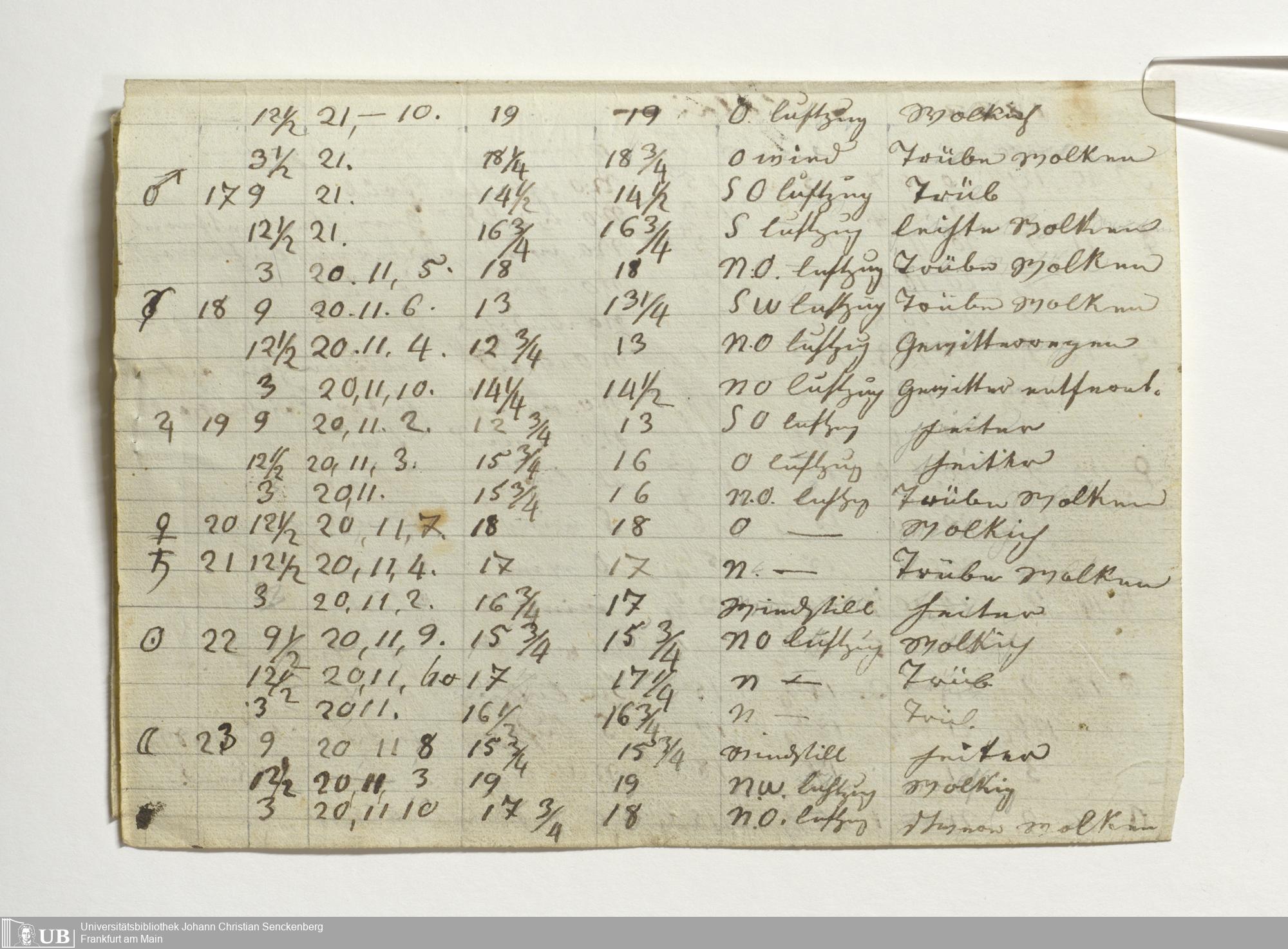 Ms. Ff. E. Rüppell III Bd. 1 - Journal der meteorologischen Beobachtungen