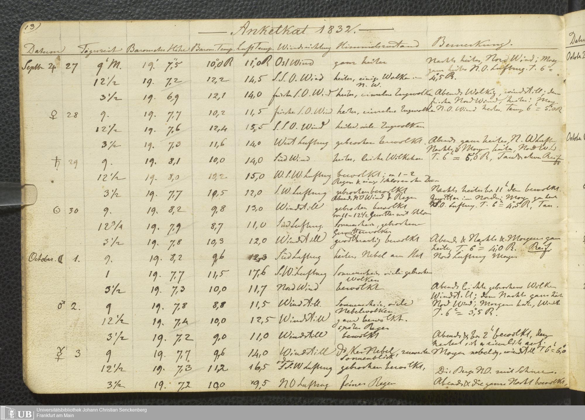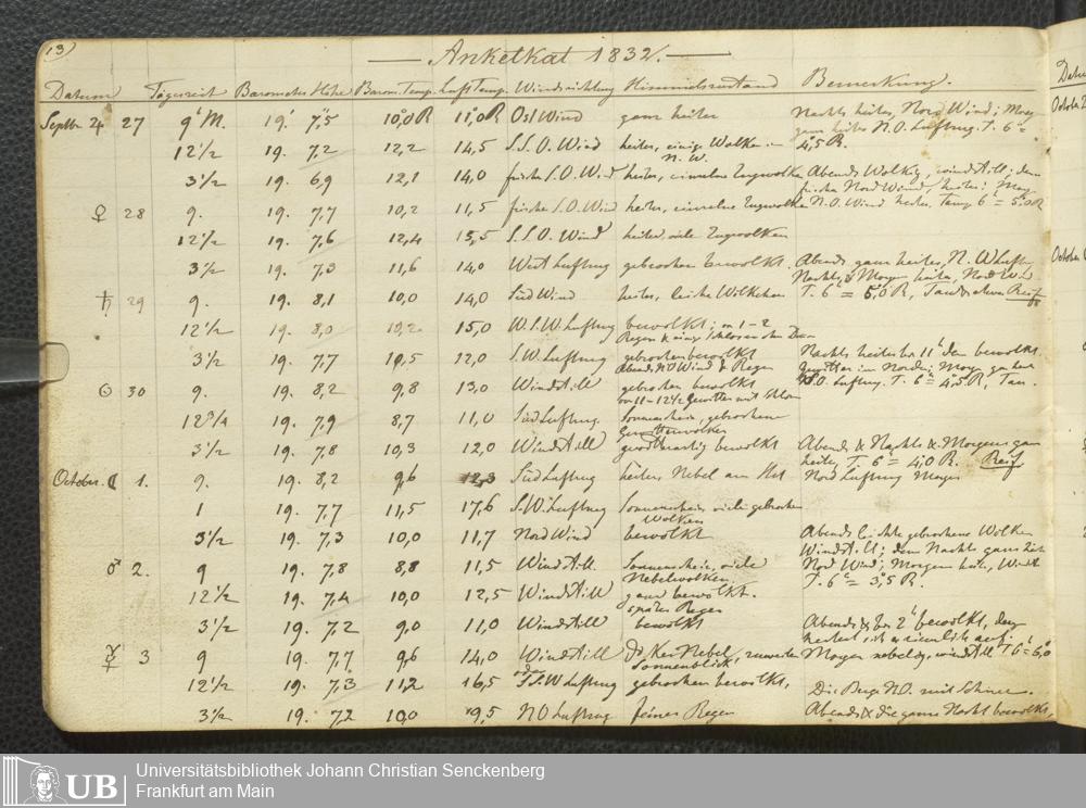 Ms. Ff. E. Rüppell III Bd. 2 - Journal der meteorologischen Beobachtungen