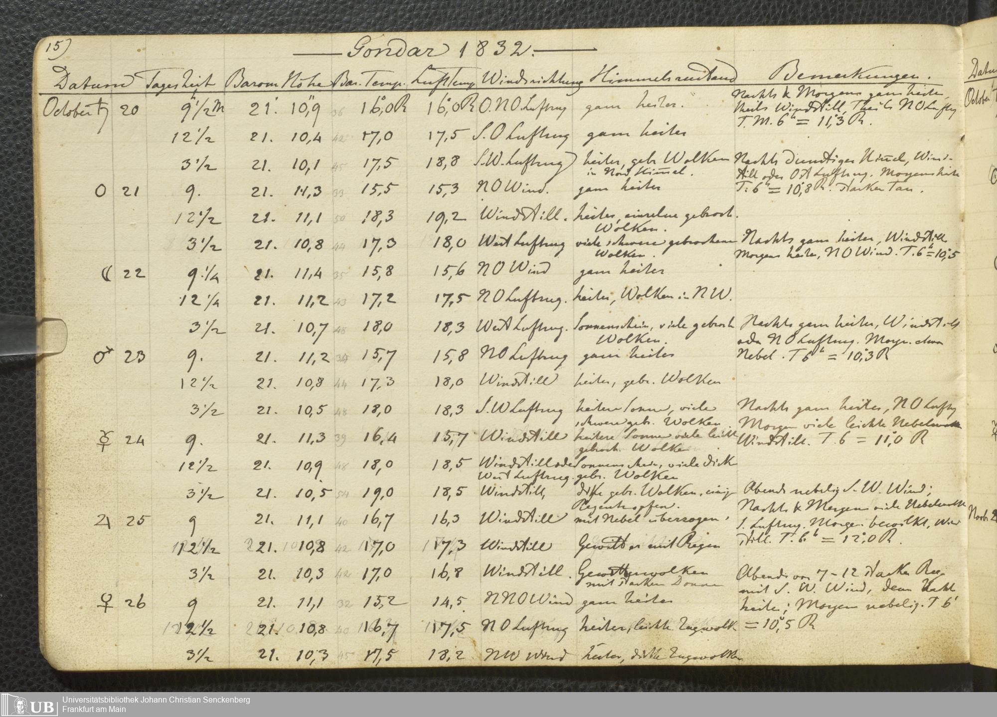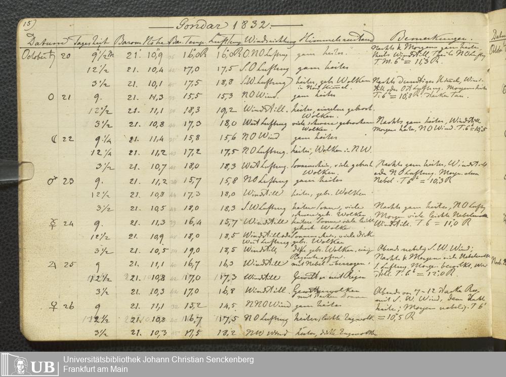 Ms. Ff. E. Rüppell III Bd. 2 - Journal der meteorologischen Beobachtungen