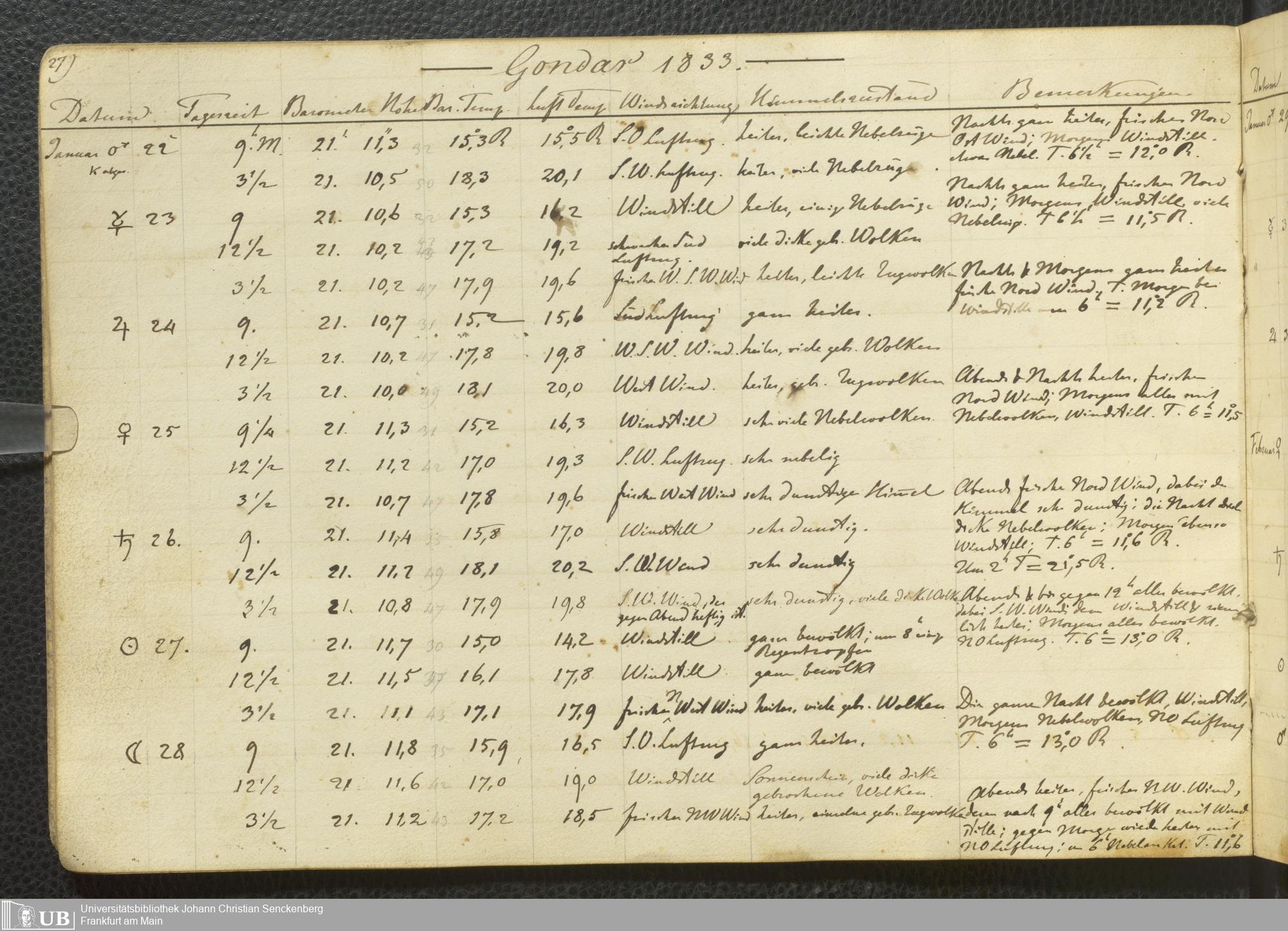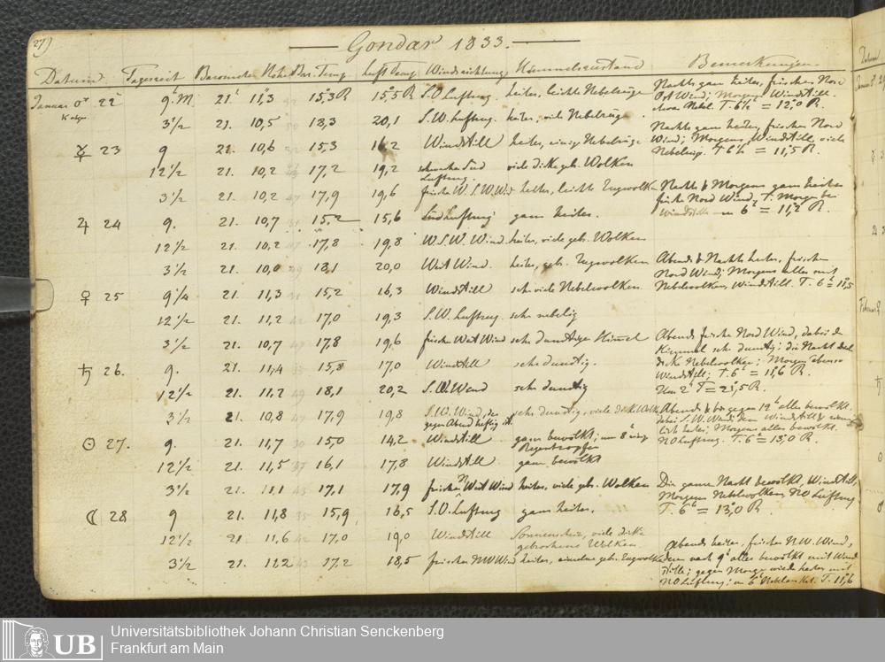 Ms. Ff. E. Rüppell III Bd. 2 - Journal der meteorologischen Beobachtungen