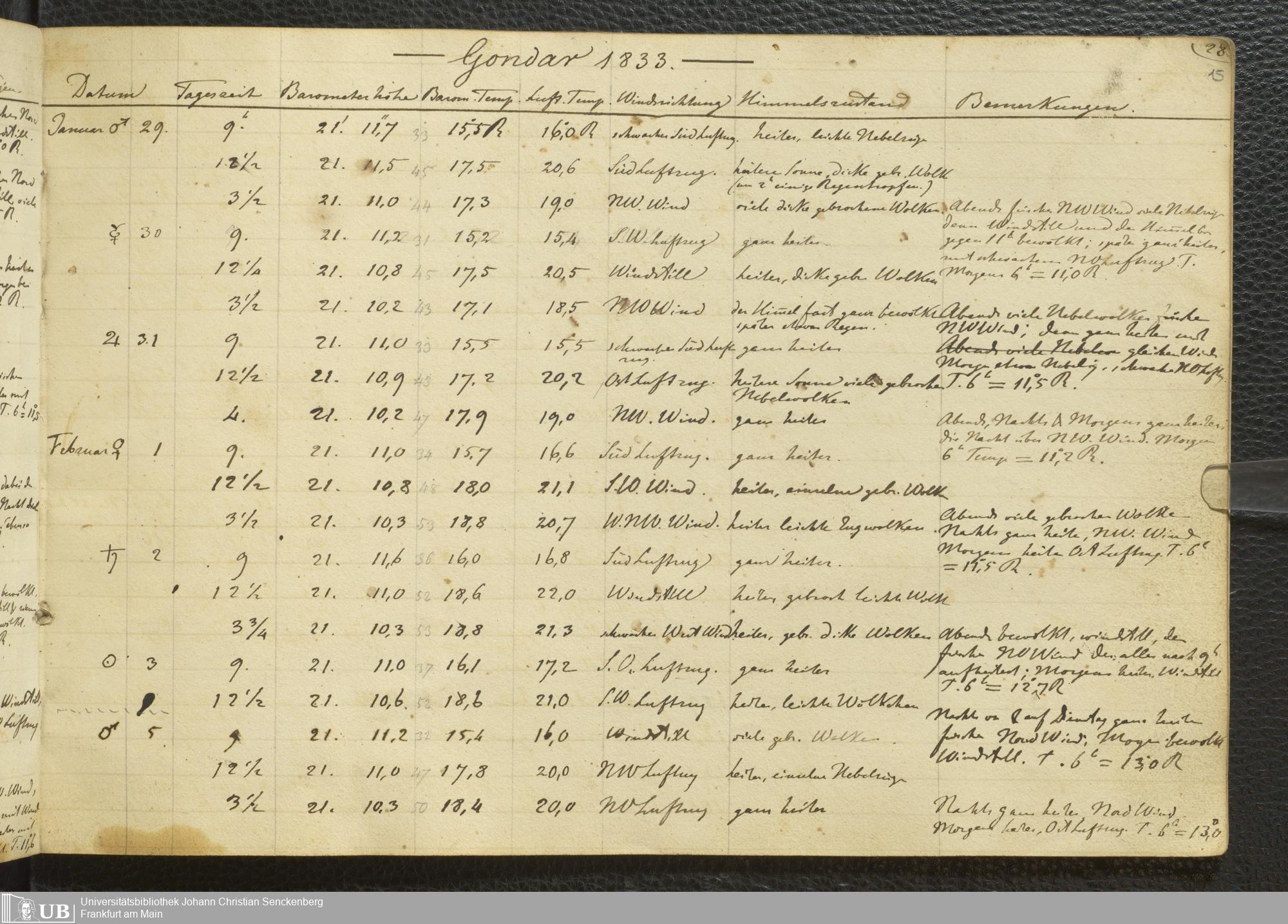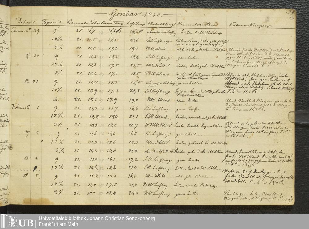 Ms. Ff. E. Rüppell III Bd. 2 - Journal der meteorologischen Beobachtungen