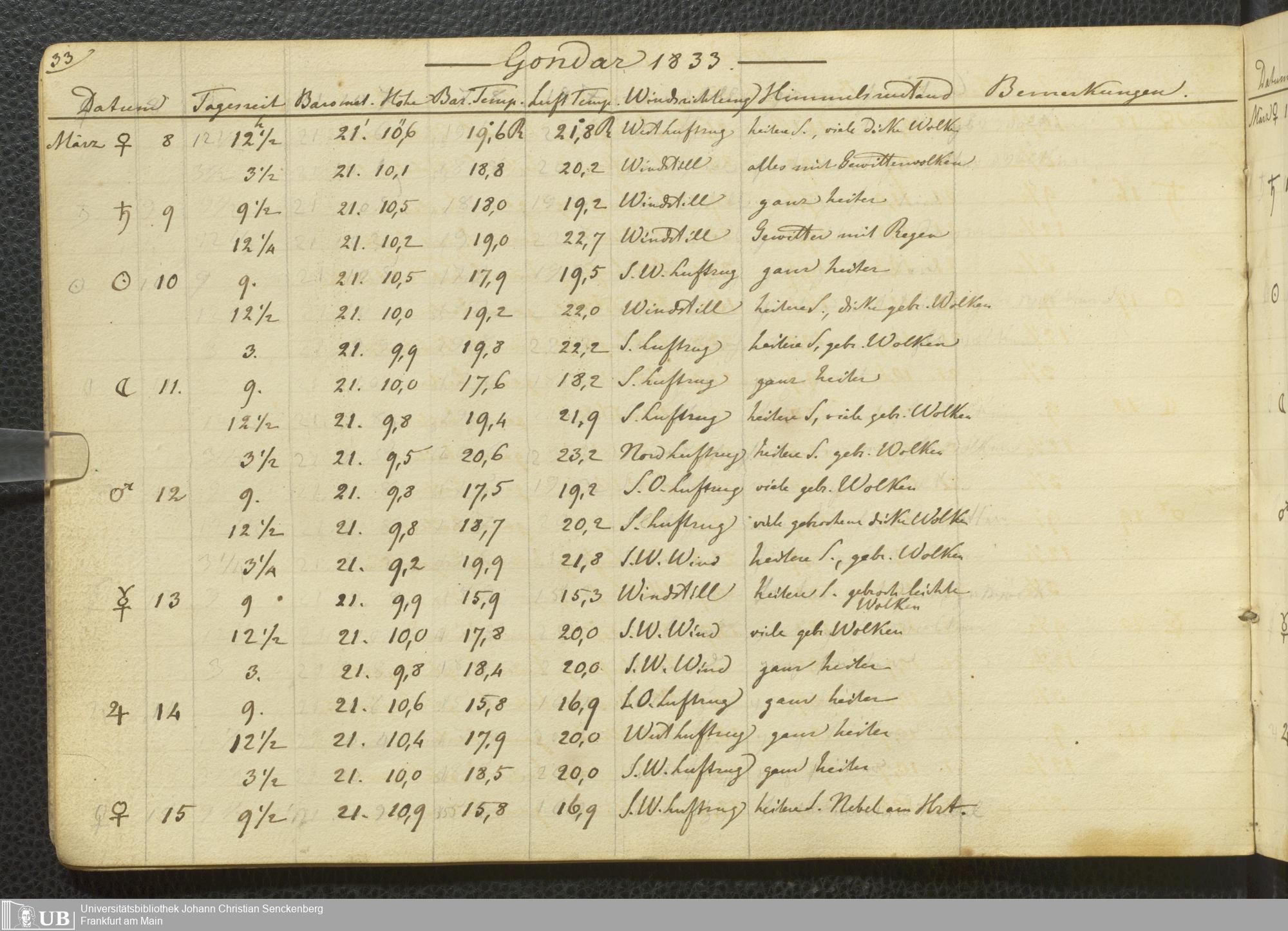 Ms. Ff. E. Rüppell III Bd. 2 - Journal der meteorologischen Beobachtungen