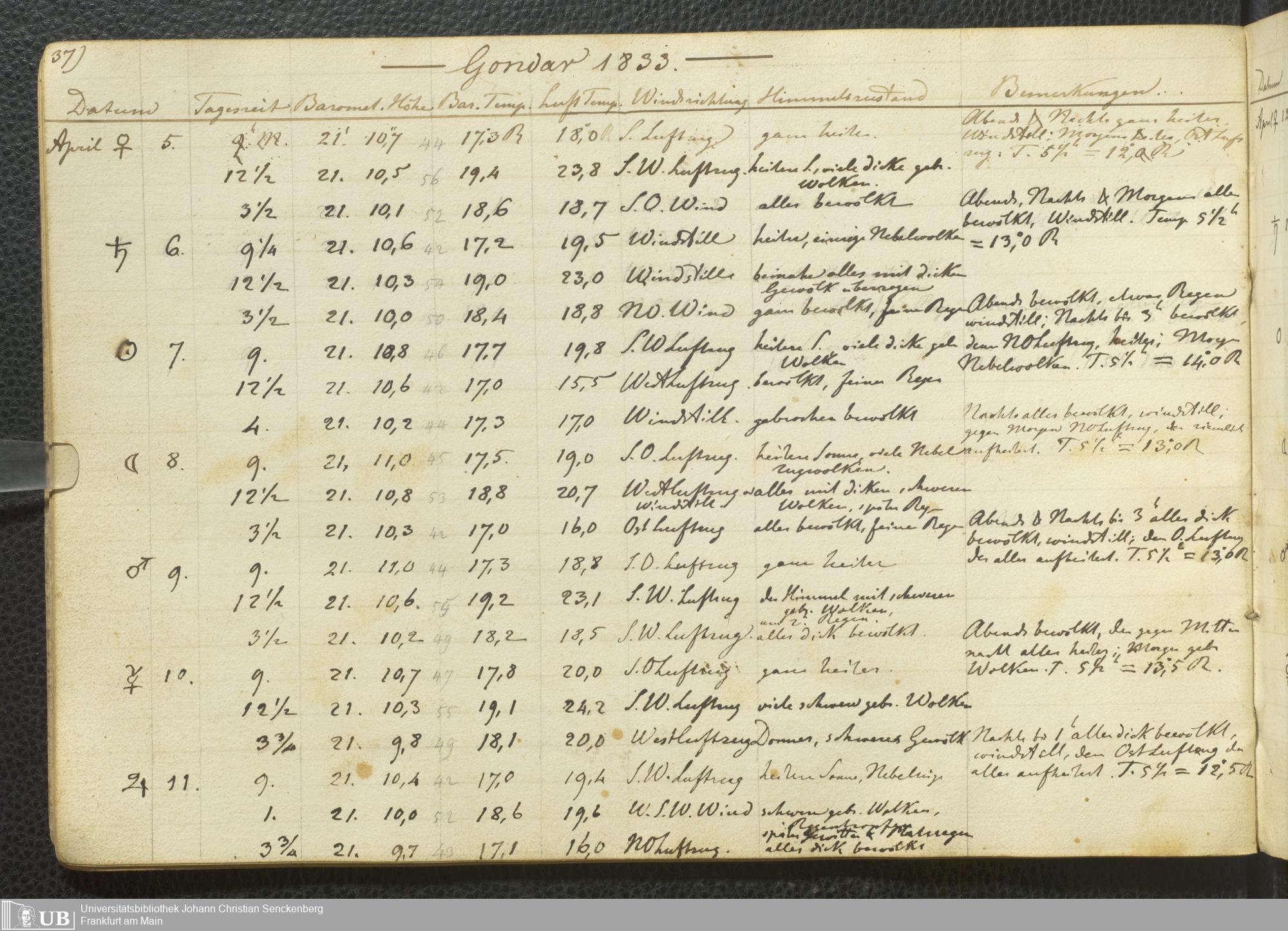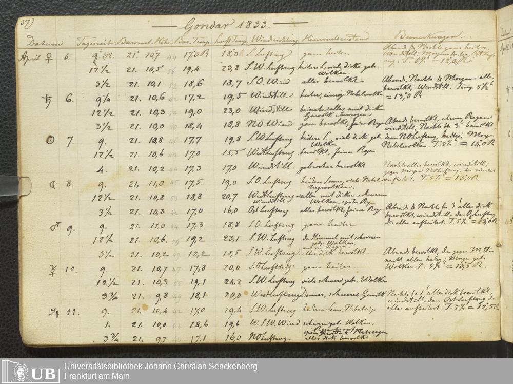 Ms. Ff. E. Rüppell III Bd. 2 - Journal der meteorologischen Beobachtungen