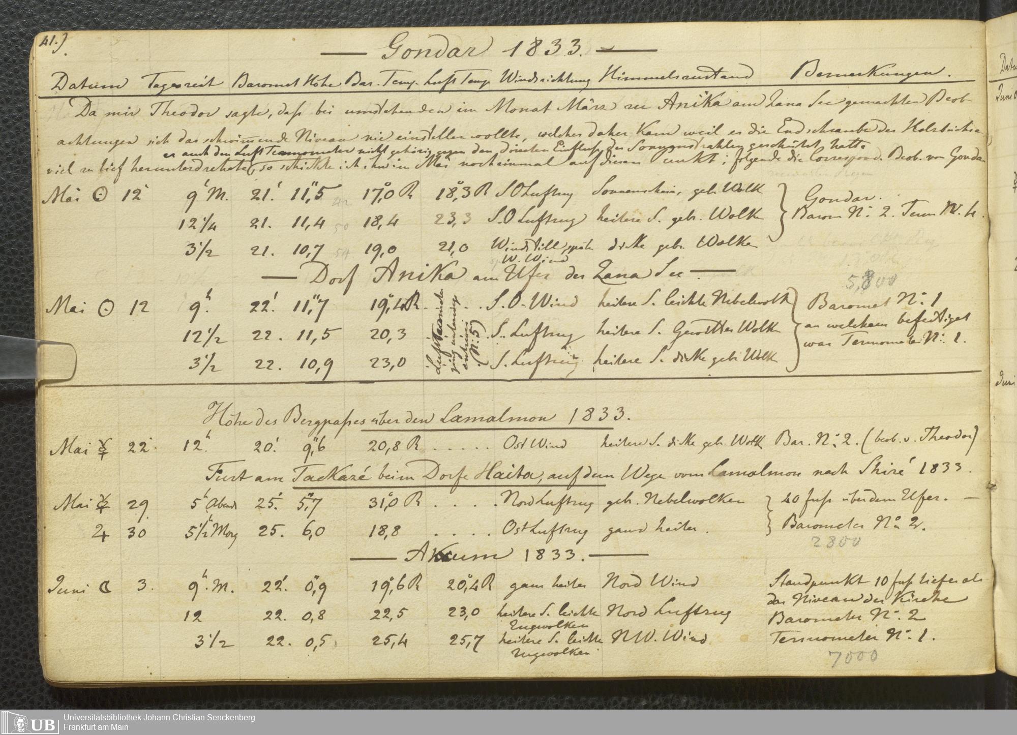Ms. Ff. E. Rüppell III Bd. 2 - Journal der meteorologischen Beobachtungen
