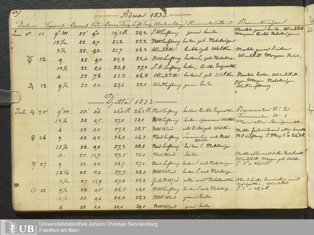 Ms. Ff. E. Rüppell III Bd. 2 - Journal der meteorologischen Beobachtungen