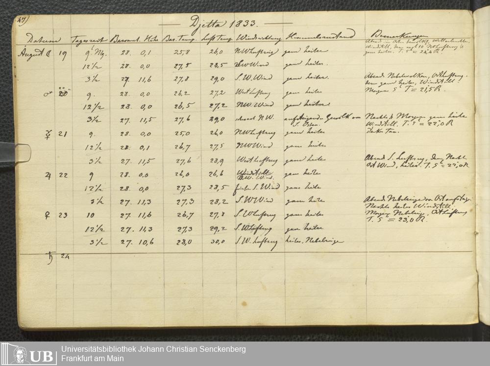 Ms. Ff. E. Rüppell III Bd. 2 - Journal der meteorologischen Beobachtungen