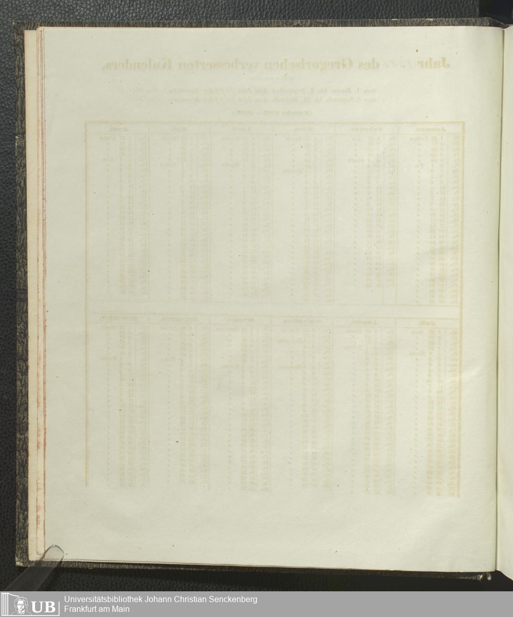 Ms. Ff. E. Rüppell IV - Kalender vom Jahr 1583 bis 1860, das heist seit der Einführung der durch Pabst Gregorius XIII verordneten Verbesserung, aus welchen Kalender die Gleichstellung dieser Zeitrechnung mit der von den Abyssiniern gebräuchlichen Chronologie ersehen werden kann; zum Behuf der geschichtlichen Forschungen der Abyssinischen Chroniken entworfen