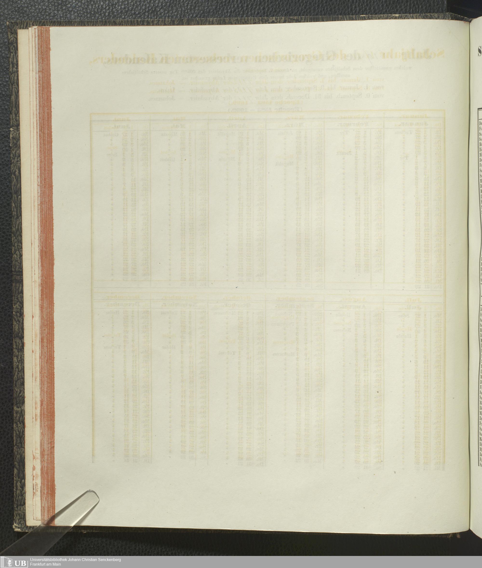 Ms. Ff. E. Rüppell IV - Kalender vom Jahr 1583 bis 1860, das heist seit der Einführung der durch Pabst Gregorius XIII verordneten Verbesserung, aus welchen Kalender die Gleichstellung dieser Zeitrechnung mit der von den Abyssiniern gebräuchlichen Chronologie ersehen werden kann; zum Behuf der geschichtlichen Forschungen der Abyssinischen Chroniken entworfen