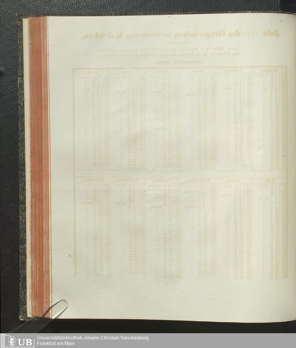 Ms. Ff. E. Rüppell IV - Kalender vom Jahr 1583 bis 1860, das heist seit der Einführung der durch Pabst Gregorius XIII verordneten Verbesserung, aus welchen Kalender die Gleichstellung dieser Zeitrechnung mit der von den Abyssiniern gebräuchlichen Chronologie ersehen werden kann; zum Behuf der geschichtlichen Forschungen der Abyssinischen Chroniken entworfen