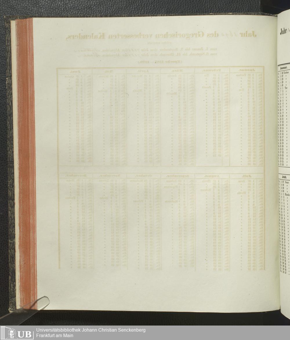 Ms. Ff. E. Rüppell IV - Kalender vom Jahr 1583 bis 1860, das heist seit der Einführung der durch Pabst Gregorius XIII verordneten Verbesserung, aus welchen Kalender die Gleichstellung dieser Zeitrechnung mit der von den Abyssiniern gebräuchlichen Chronologie ersehen werden kann; zum Behuf der geschichtlichen Forschungen der Abyssinischen Chroniken entworfen