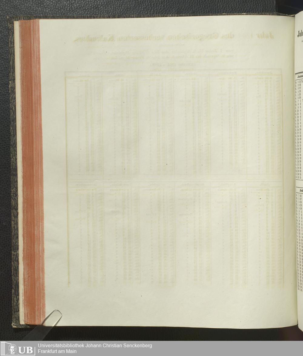 Ms. Ff. E. Rüppell IV - Kalender vom Jahr 1583 bis 1860, das heist seit der Einführung der durch Pabst Gregorius XIII verordneten Verbesserung, aus welchen Kalender die Gleichstellung dieser Zeitrechnung mit der von den Abyssiniern gebräuchlichen Chronologie ersehen werden kann; zum Behuf der geschichtlichen Forschungen der Abyssinischen Chroniken entworfen