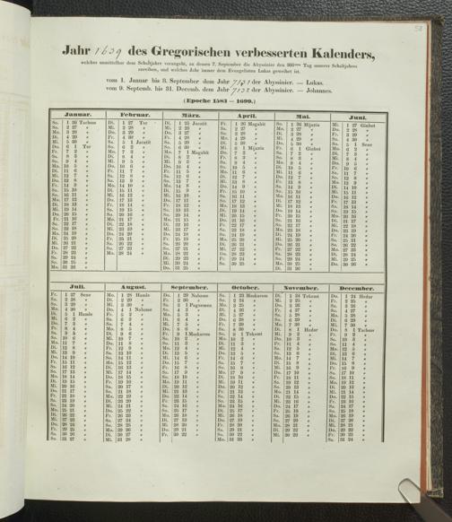 Ms. Ff. E. Rüppell IV - Kalender vom Jahr 1583 bis 1860, das heist seit der Einführung der durch Pabst Gregorius XIII verordneten Verbesserung, aus welchen Kalender die Gleichstellung dieser Zeitrechnung mit der von den Abyssiniern gebräuchlichen Chronologie ersehen werden kann; zum Behuf der geschichtlichen Forschungen der Abyssinischen Chroniken entworfen