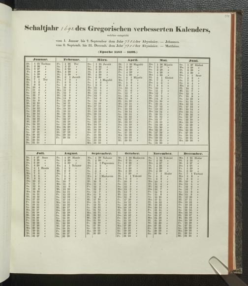 Ms. Ff. E. Rüppell IV - Kalender vom Jahr 1583 bis 1860, das heist seit der Einführung der durch Pabst Gregorius XIII verordneten Verbesserung, aus welchen Kalender die Gleichstellung dieser Zeitrechnung mit der von den Abyssiniern gebräuchlichen Chronologie ersehen werden kann; zum Behuf der geschichtlichen Forschungen der Abyssinischen Chroniken entworfen