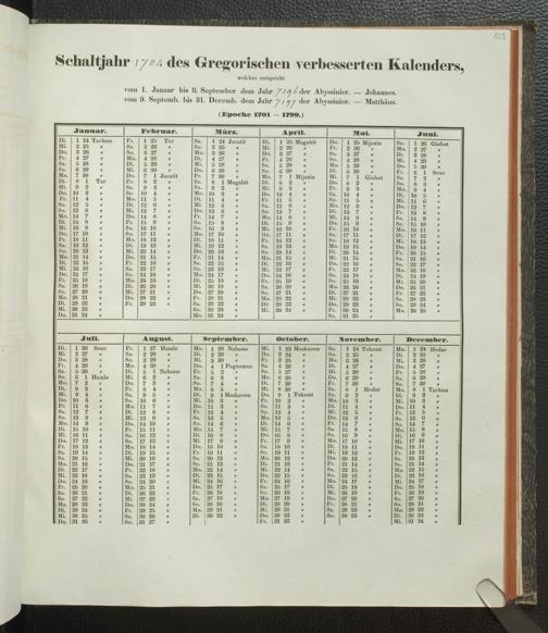 Ms. Ff. E. Rüppell IV - Kalender vom Jahr 1583 bis 1860, das heist seit der Einführung der durch Pabst Gregorius XIII verordneten Verbesserung, aus welchen Kalender die Gleichstellung dieser Zeitrechnung mit der von den Abyssiniern gebräuchlichen Chronologie ersehen werden kann; zum Behuf der geschichtlichen Forschungen der Abyssinischen Chroniken entworfen