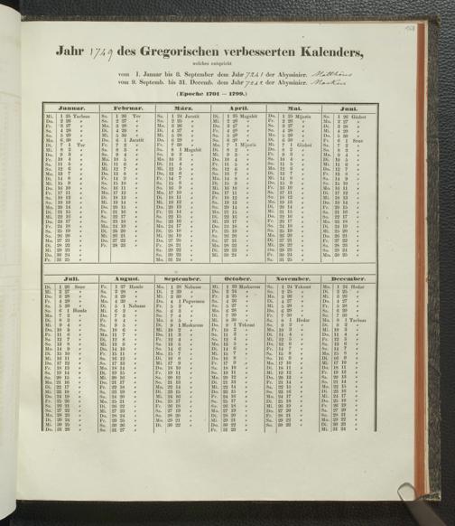 Ms. Ff. E. Rüppell IV - Kalender vom Jahr 1583 bis 1860, das heist seit der Einführung der durch Pabst Gregorius XIII verordneten Verbesserung, aus welchen Kalender die Gleichstellung dieser Zeitrechnung mit der von den Abyssiniern gebräuchlichen Chronologie ersehen werden kann; zum Behuf der geschichtlichen Forschungen der Abyssinischen Chroniken entworfen
