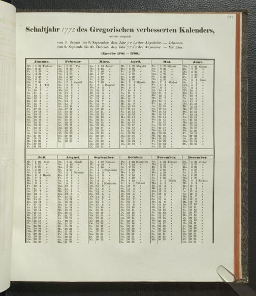 Ms. Ff. E. Rüppell IV - Kalender vom Jahr 1583 bis 1860, das heist seit der Einführung der durch Pabst Gregorius XIII verordneten Verbesserung, aus welchen Kalender die Gleichstellung dieser Zeitrechnung mit der von den Abyssiniern gebräuchlichen Chronologie ersehen werden kann; zum Behuf der geschichtlichen Forschungen der Abyssinischen Chroniken entworfen