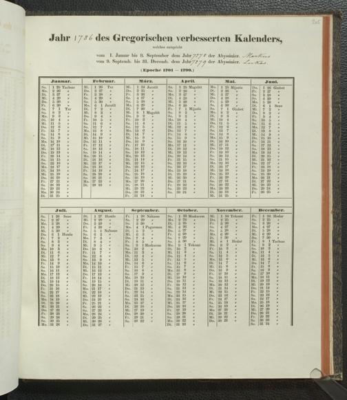 Ms. Ff. E. Rüppell IV - Kalender vom Jahr 1583 bis 1860, das heist seit der Einführung der durch Pabst Gregorius XIII verordneten Verbesserung, aus welchen Kalender die Gleichstellung dieser Zeitrechnung mit der von den Abyssiniern gebräuchlichen Chronologie ersehen werden kann; zum Behuf der geschichtlichen Forschungen der Abyssinischen Chroniken entworfen