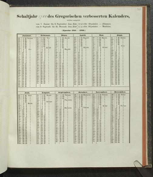 Ms. Ff. E. Rüppell IV - Kalender vom Jahr 1583 bis 1860, das heist seit der Einführung der durch Pabst Gregorius XIII verordneten Verbesserung, aus welchen Kalender die Gleichstellung dieser Zeitrechnung mit der von den Abyssiniern gebräuchlichen Chronologie ersehen werden kann; zum Behuf der geschichtlichen Forschungen der Abyssinischen Chroniken entworfen
