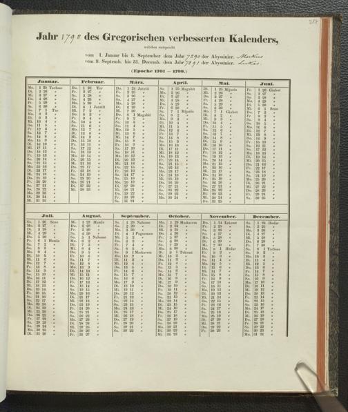 Ms. Ff. E. Rüppell IV - Kalender vom Jahr 1583 bis 1860, das heist seit der Einführung der durch Pabst Gregorius XIII verordneten Verbesserung, aus welchen Kalender die Gleichstellung dieser Zeitrechnung mit der von den Abyssiniern gebräuchlichen Chronologie ersehen werden kann; zum Behuf der geschichtlichen Forschungen der Abyssinischen Chroniken entworfen