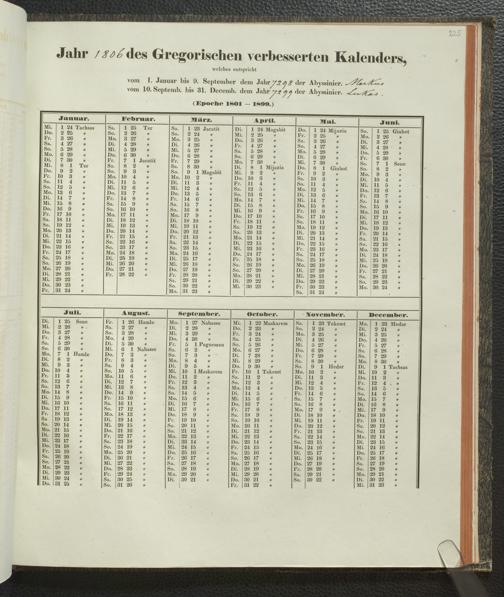 Ms. Ff. E. Rüppell IV - Kalender vom Jahr 1583 bis 1860, das heist seit der Einführung der durch Pabst Gregorius XIII verordneten Verbesserung, aus welchen Kalender die Gleichstellung dieser Zeitrechnung mit der von den Abyssiniern gebräuchlichen Chronologie ersehen werden kann; zum Behuf der geschichtlichen Forschungen der Abyssinischen Chroniken entworfen