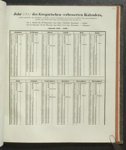 Ms. Ff. E. Rüppell IV - Kalender vom Jahr 1583 bis 1860, das heist seit der Einführung der durch Pabst Gregorius XIII verordneten Verbesserung, aus welchen Kalender die Gleichstellung dieser Zeitrechnung mit der von den Abyssiniern gebräuchlichen Chronologie ersehen werden kann; zum Behuf der geschichtlichen Forschungen der Abyssinischen Chroniken entworfen