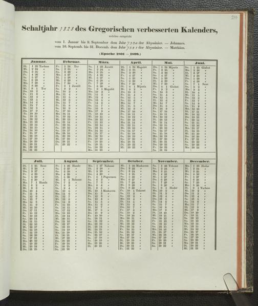 Ms. Ff. E. Rüppell IV - Kalender vom Jahr 1583 bis 1860, das heist seit der Einführung der durch Pabst Gregorius XIII verordneten Verbesserung, aus welchen Kalender die Gleichstellung dieser Zeitrechnung mit der von den Abyssiniern gebräuchlichen Chronologie ersehen werden kann; zum Behuf der geschichtlichen Forschungen der Abyssinischen Chroniken entworfen