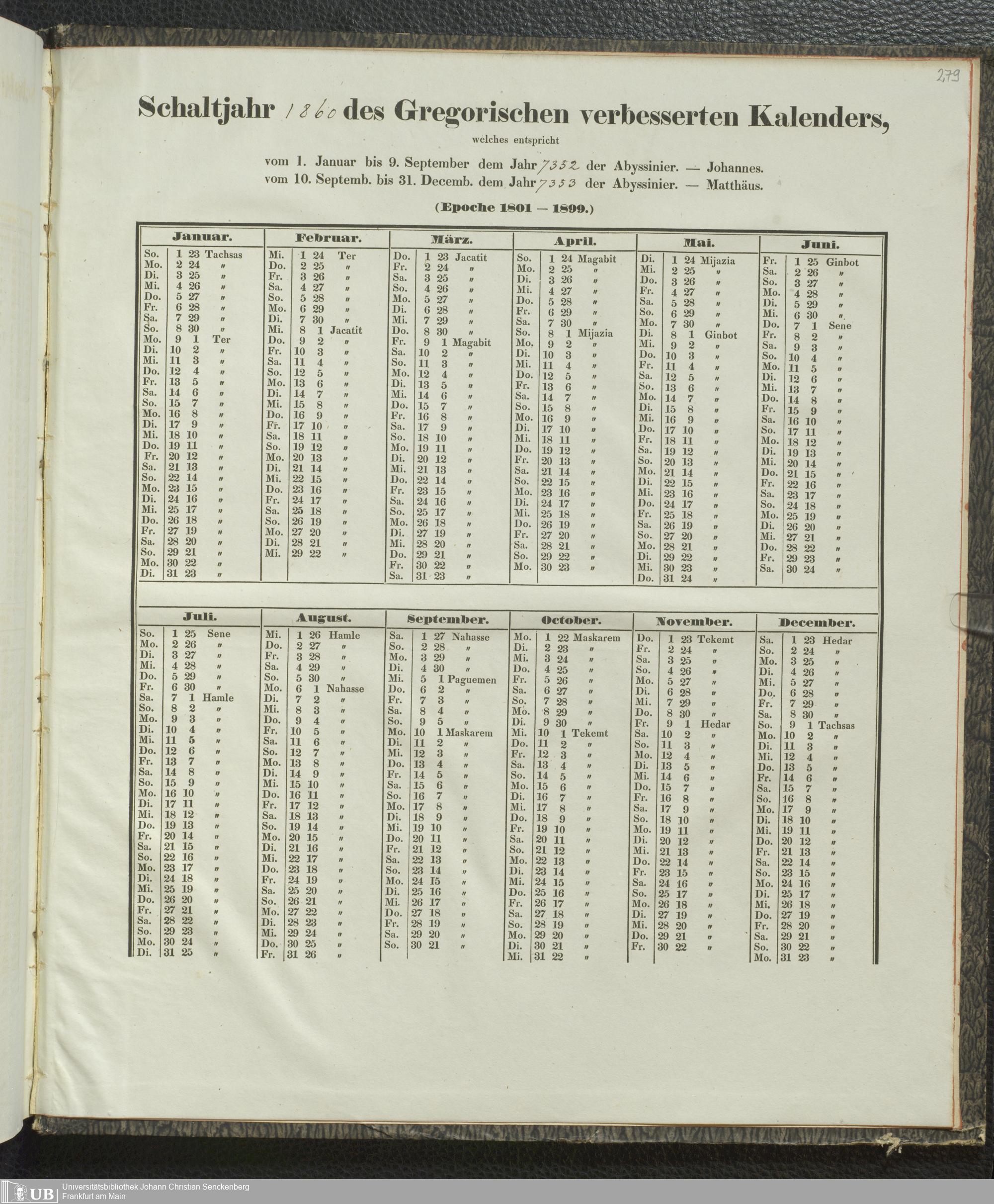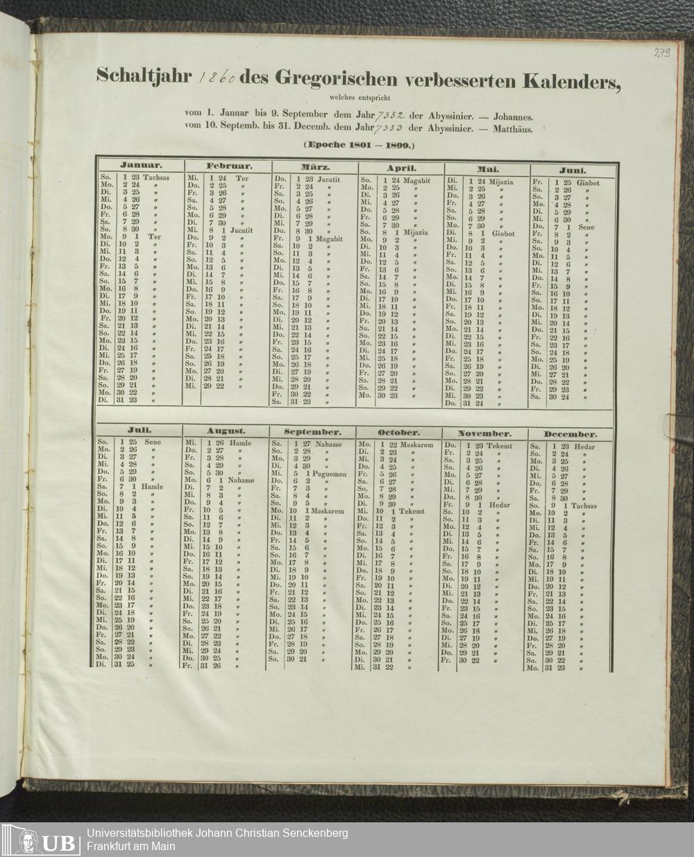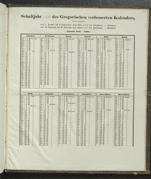 Ms. Ff. E. Rüppell IV - Kalender vom Jahr 1583 bis 1860, das heist seit der Einführung der durch Pabst Gregorius XIII verordneten Verbesserung, aus welchen Kalender die Gleichstellung dieser Zeitrechnung mit der von den Abyssiniern gebräuchlichen Chronologie ersehen werden kann; zum Behuf der geschichtlichen Forschungen der Abyssinischen Chroniken entworfen