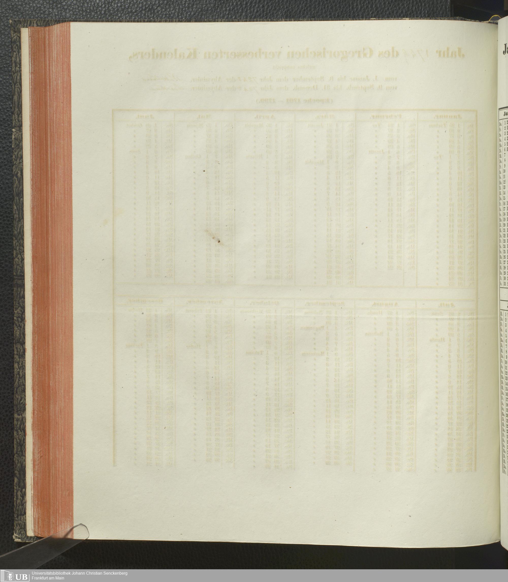 Ms. Ff. E. Rüppell IV - Kalender vom Jahr 1583 bis 1860, das heist seit der Einführung der durch Pabst Gregorius XIII verordneten Verbesserung, aus welchen Kalender die Gleichstellung dieser Zeitrechnung mit der von den Abyssiniern gebräuchlichen Chronologie ersehen werden kann; zum Behuf der geschichtlichen Forschungen der Abyssinischen Chroniken entworfen