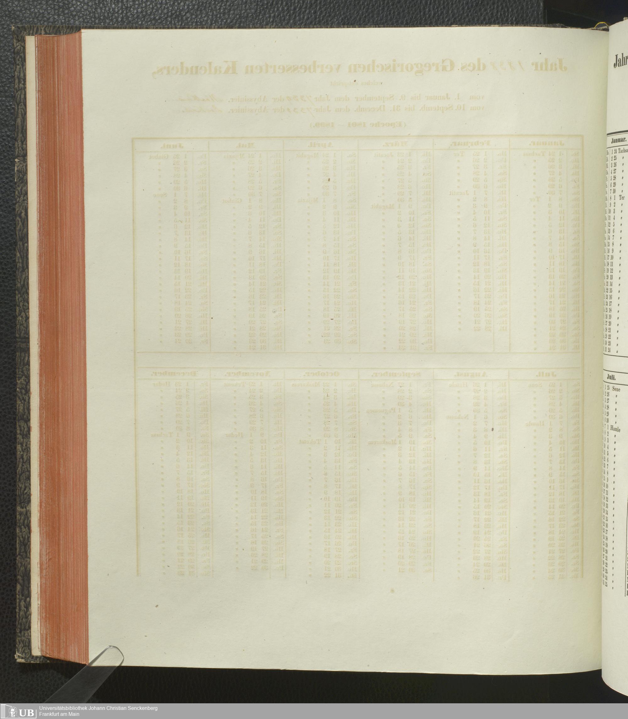 Ms. Ff. E. Rüppell IV - Kalender vom Jahr 1583 bis 1860, das heist seit der Einführung der durch Pabst Gregorius XIII verordneten Verbesserung, aus welchen Kalender die Gleichstellung dieser Zeitrechnung mit der von den Abyssiniern gebräuchlichen Chronologie ersehen werden kann; zum Behuf der geschichtlichen Forschungen der Abyssinischen Chroniken entworfen