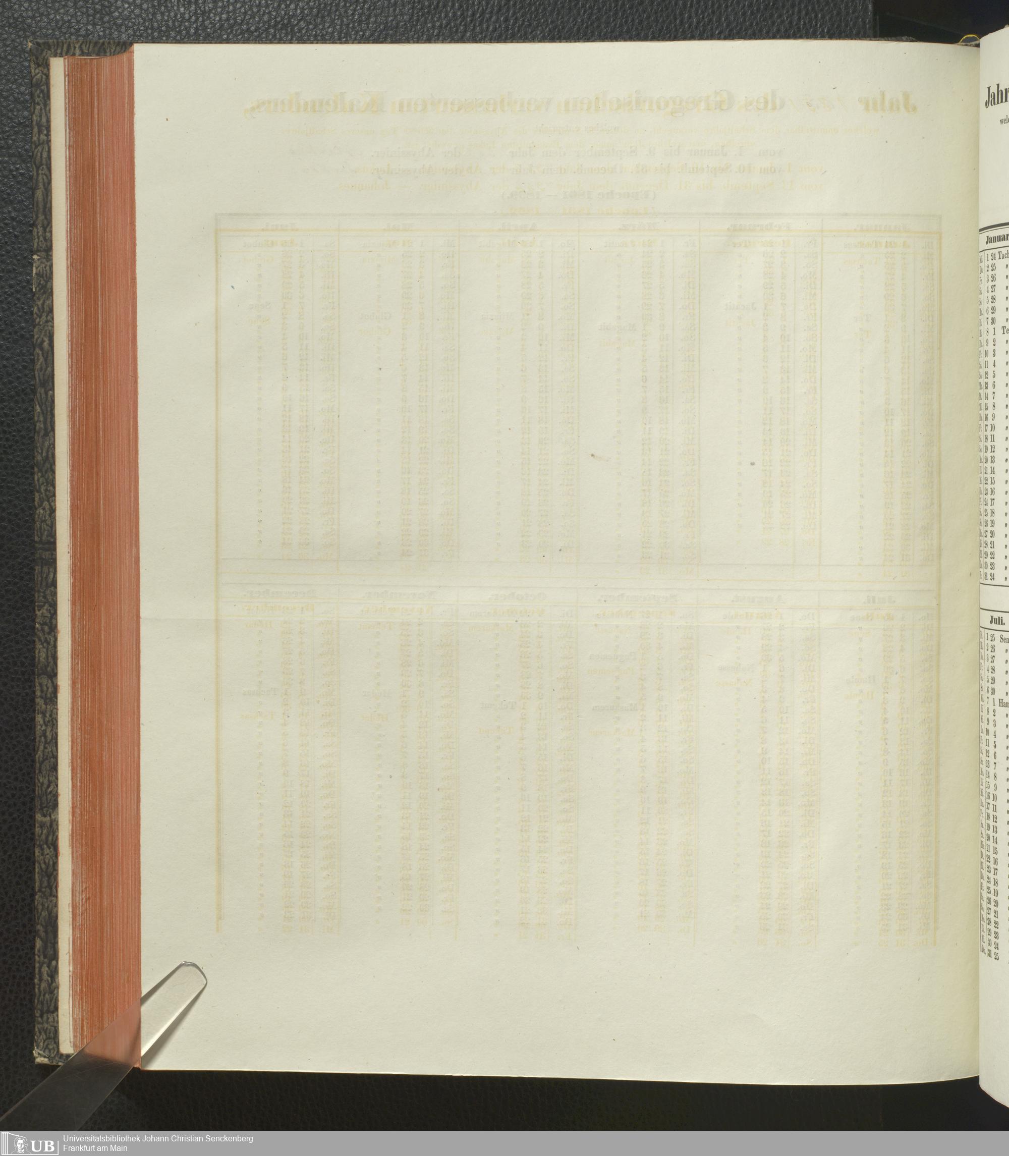 Ms. Ff. E. Rüppell IV - Kalender vom Jahr 1583 bis 1860, das heist seit der Einführung der durch Pabst Gregorius XIII verordneten Verbesserung, aus welchen Kalender die Gleichstellung dieser Zeitrechnung mit der von den Abyssiniern gebräuchlichen Chronologie ersehen werden kann; zum Behuf der geschichtlichen Forschungen der Abyssinischen Chroniken entworfen