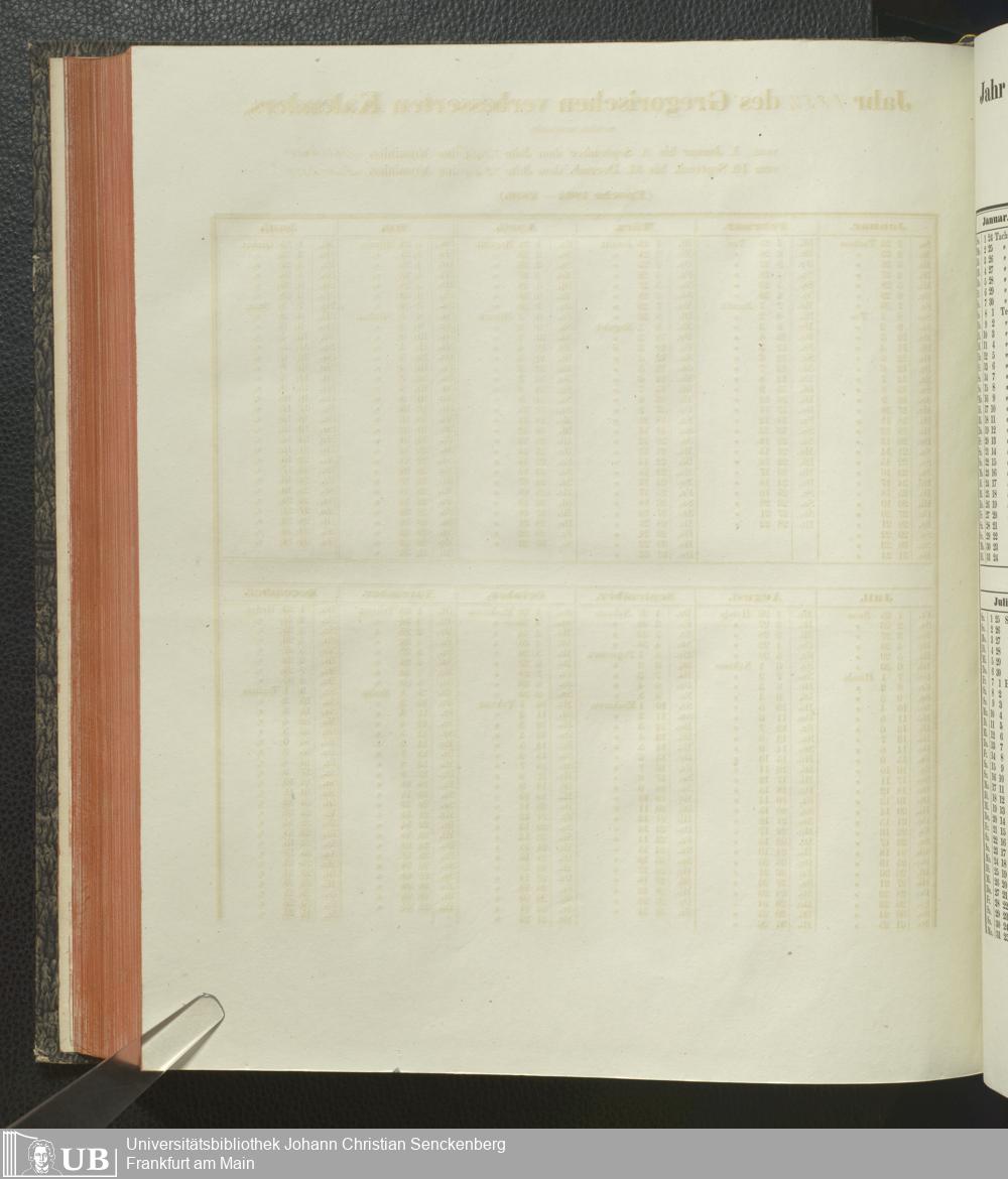 Ms. Ff. E. Rüppell IV - Kalender vom Jahr 1583 bis 1860, das heist seit der Einführung der durch Pabst Gregorius XIII verordneten Verbesserung, aus welchen Kalender die Gleichstellung dieser Zeitrechnung mit der von den Abyssiniern gebräuchlichen Chronologie ersehen werden kann; zum Behuf der geschichtlichen Forschungen der Abyssinischen Chroniken entworfen