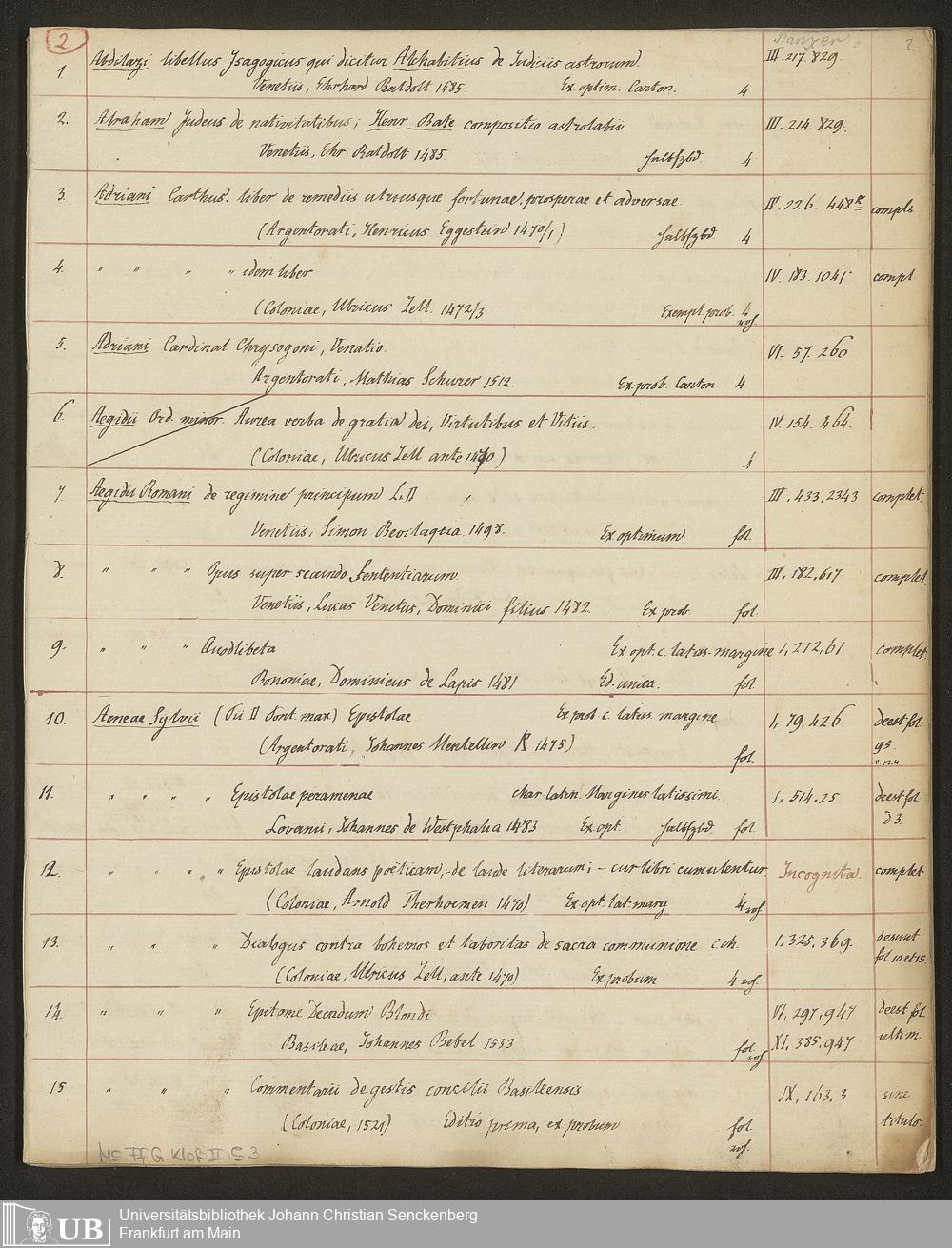 Ms. Ff. G. Kloß II.5.3 - Handschriftlicher Verkaufskatalog