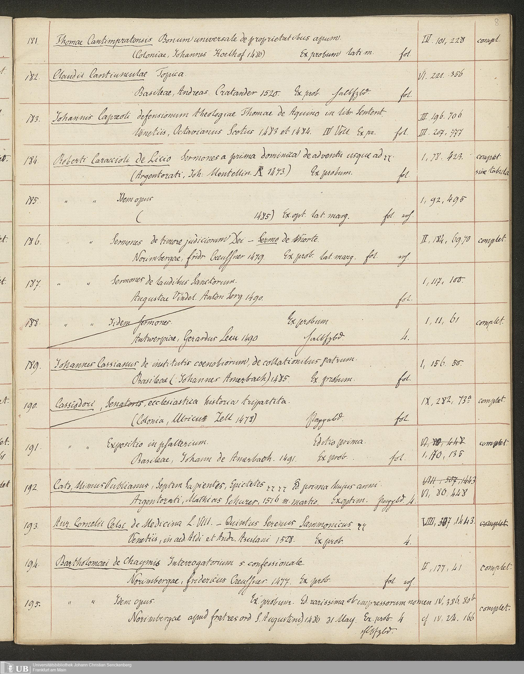 Ms. Ff. G. Kloß II.5.3 - Handschriftlicher Verkaufskatalog
