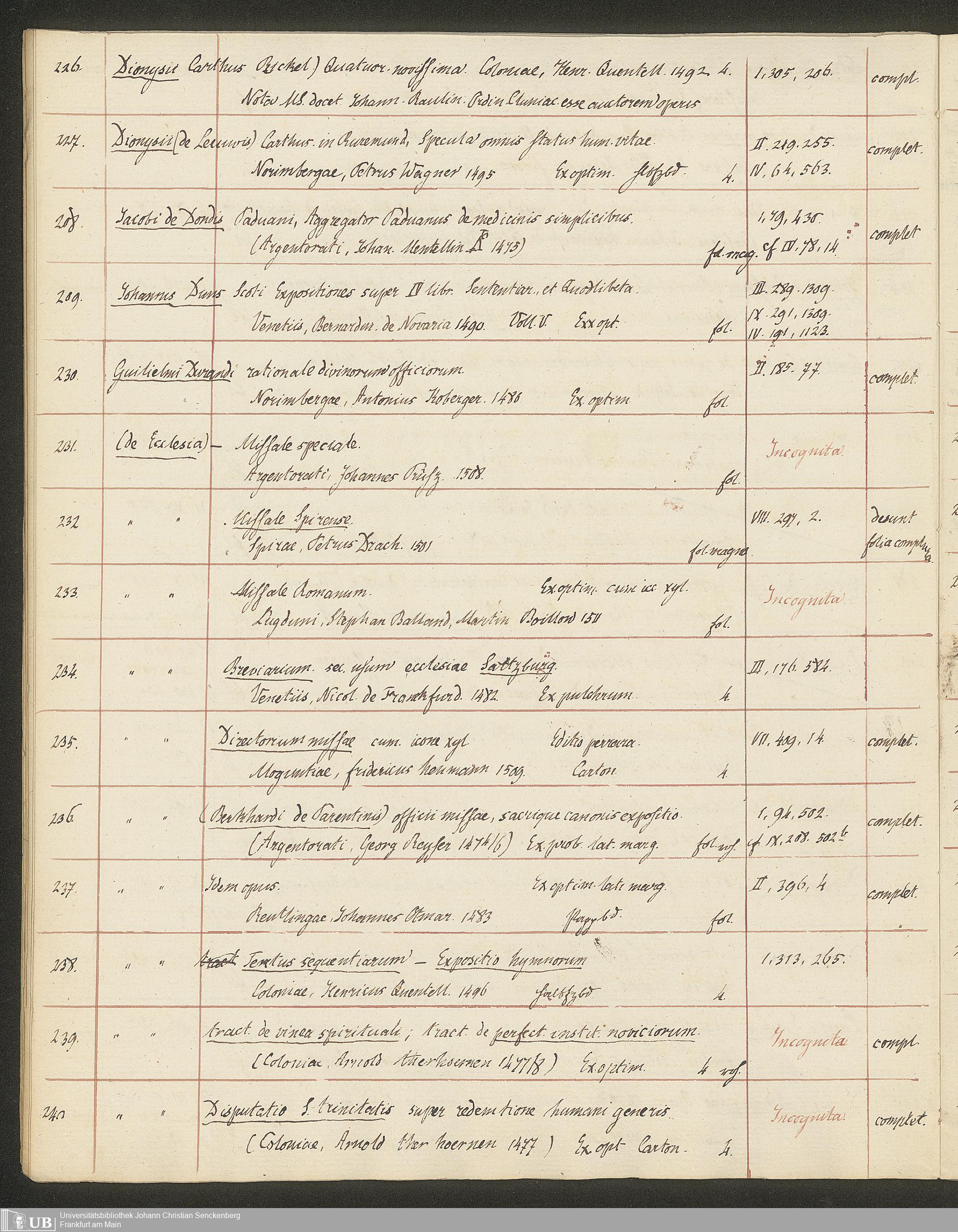 Ms. Ff. G. Kloß II.5.3 - Handschriftlicher Verkaufskatalog