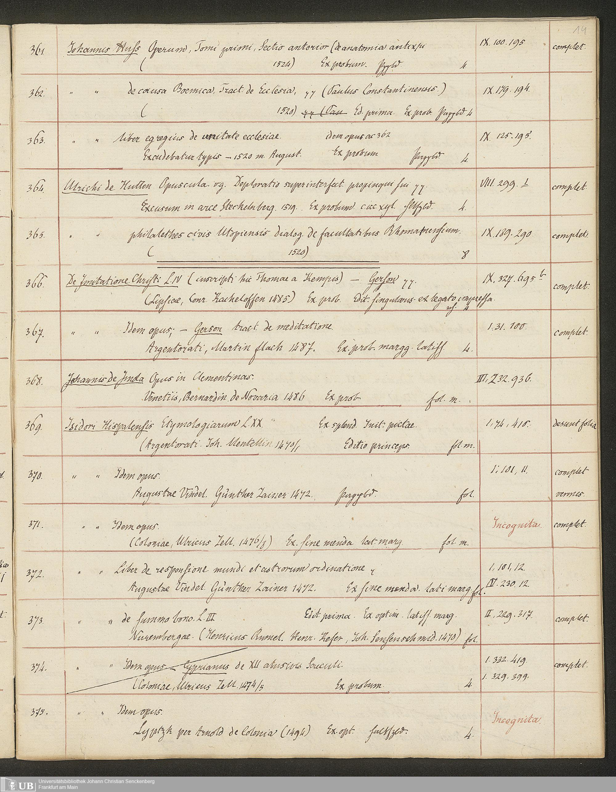 Ms. Ff. G. Kloß II.5.3 - Handschriftlicher Verkaufskatalog