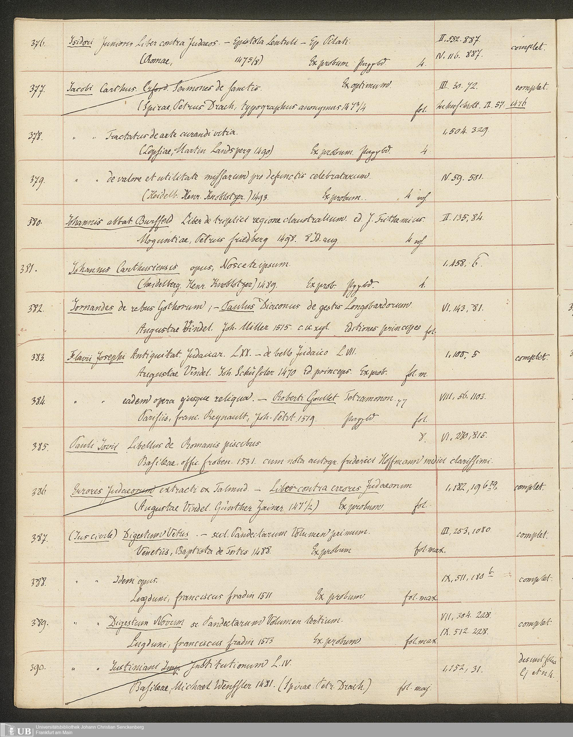 Ms. Ff. G. Kloß II.5.3 - Handschriftlicher Verkaufskatalog