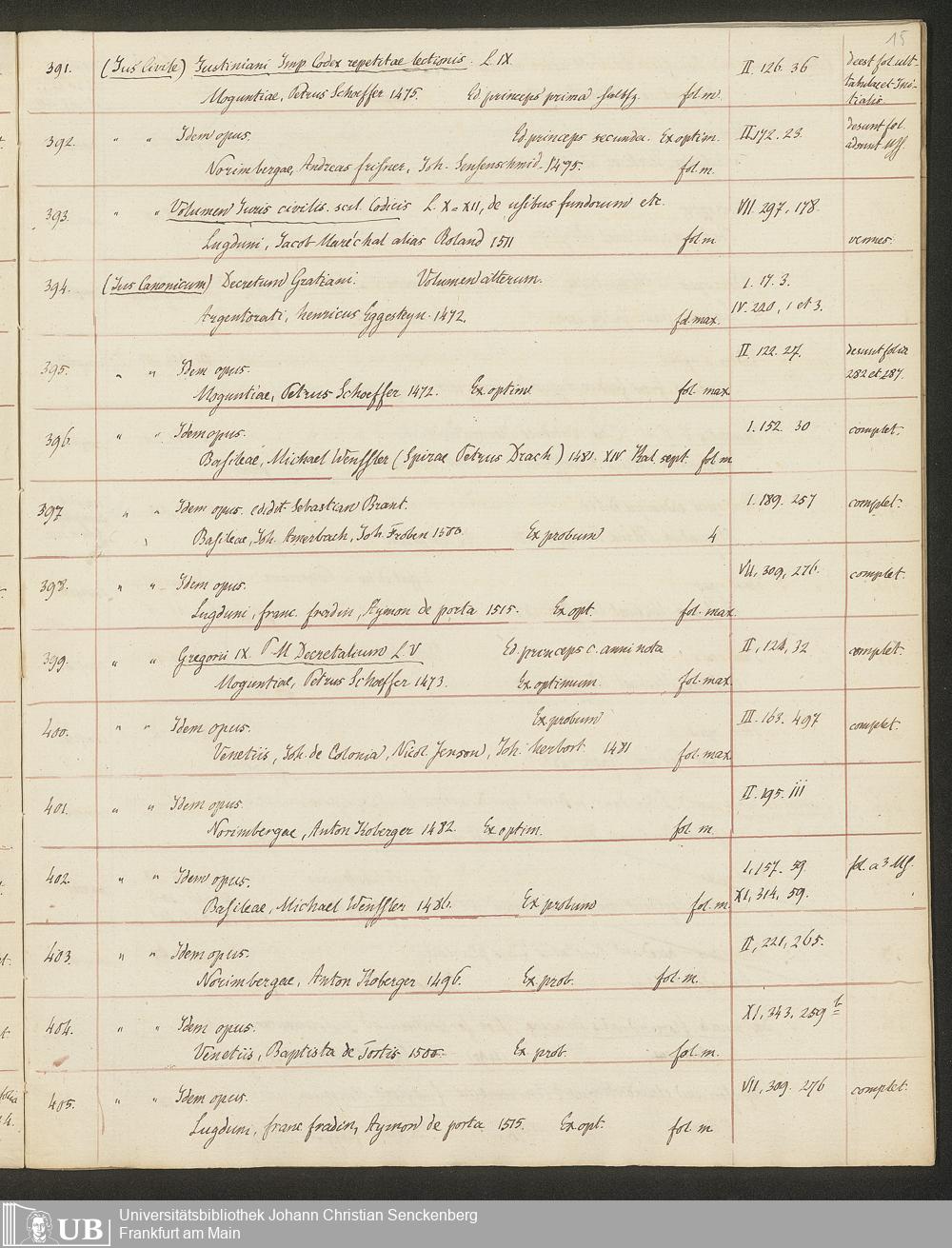 Nachlass Johann Christian Senckenberg