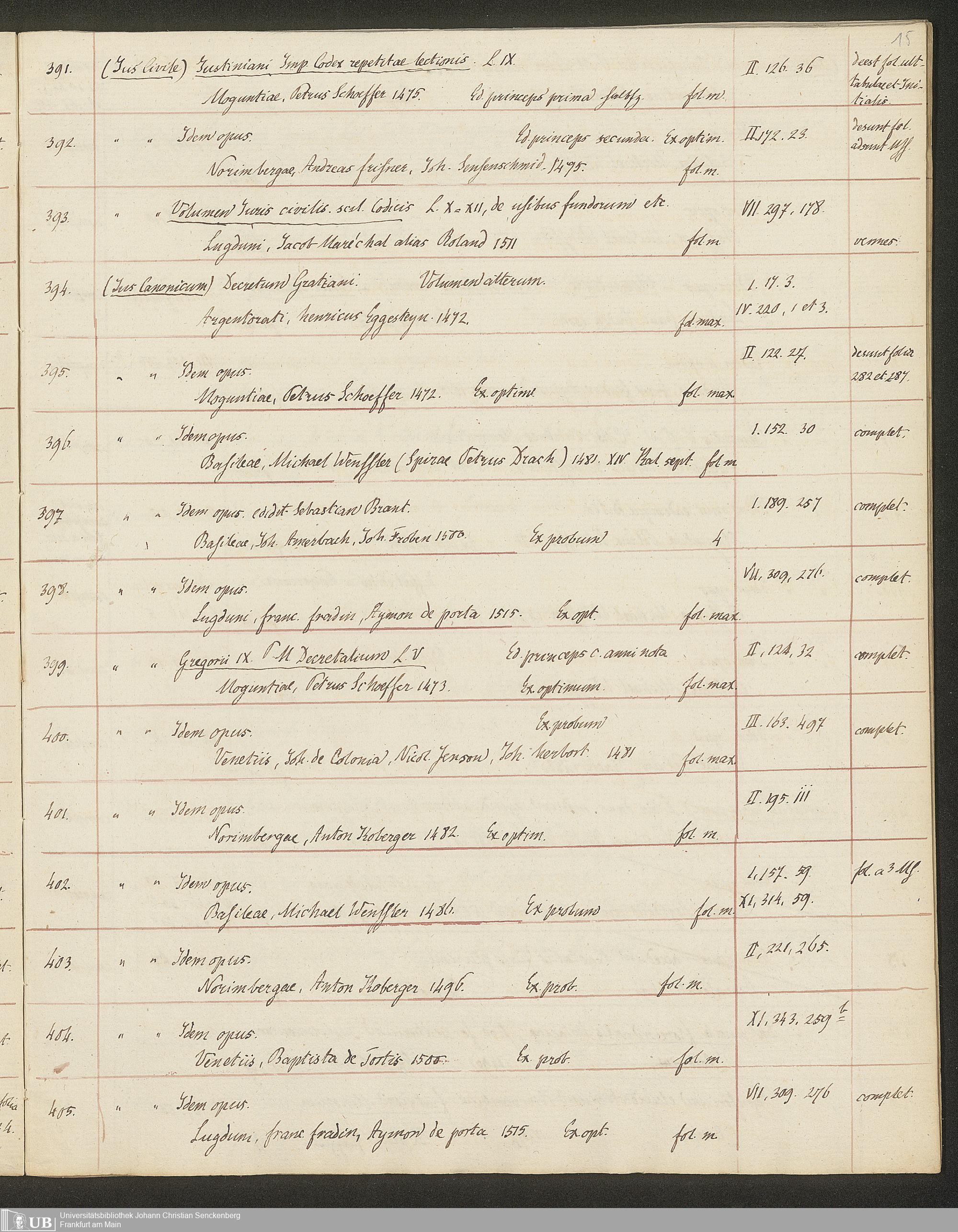 Ms. Ff. G. Kloß II.5.3 - Handschriftlicher Verkaufskatalog