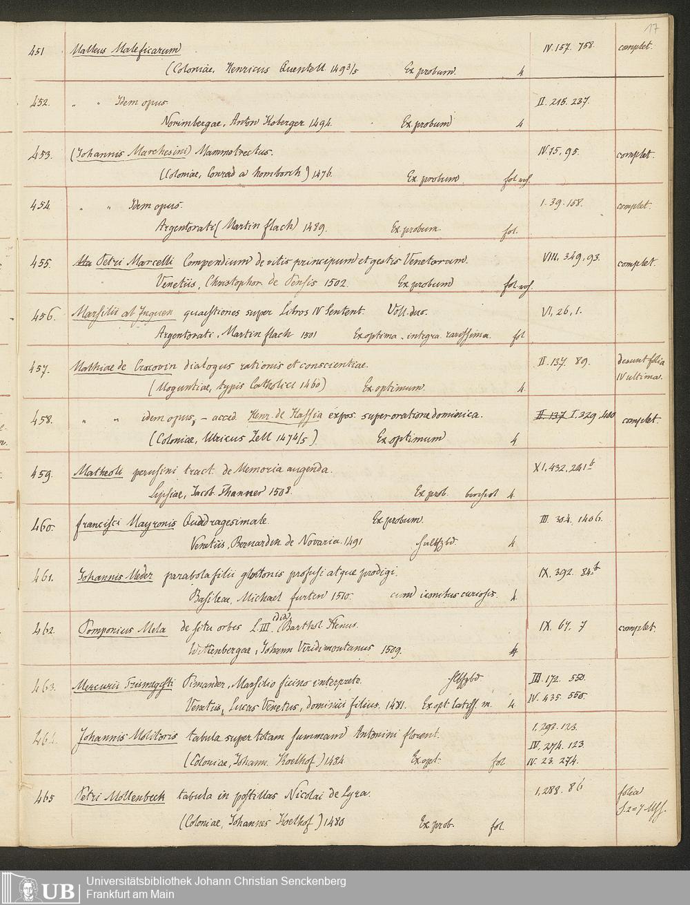 Ms. Ff. G. Kloß II.5.3 - Handschriftlicher Verkaufskatalog