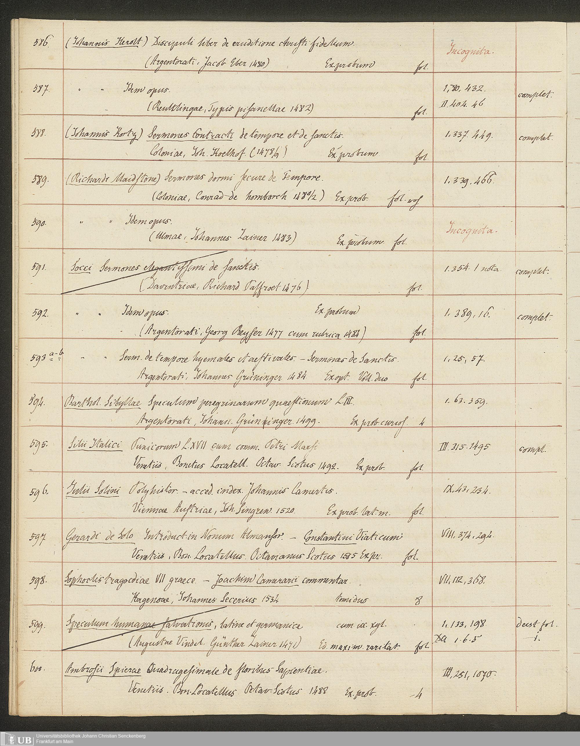 Ms. Ff. G. Kloß II.5.3 - Handschriftlicher Verkaufskatalog