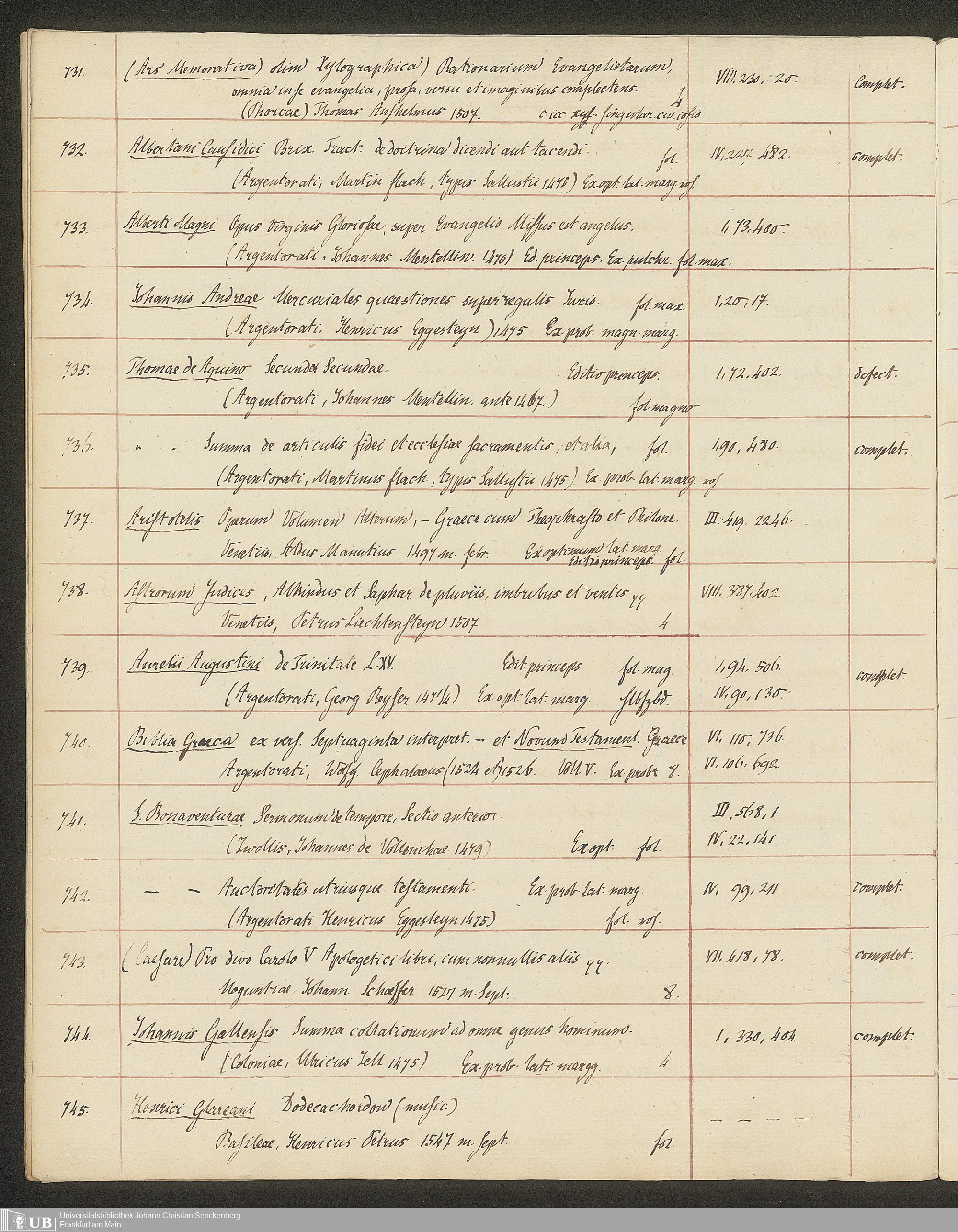 Ms. Ff. G. Kloß II.5.3 - Handschriftlicher Verkaufskatalog