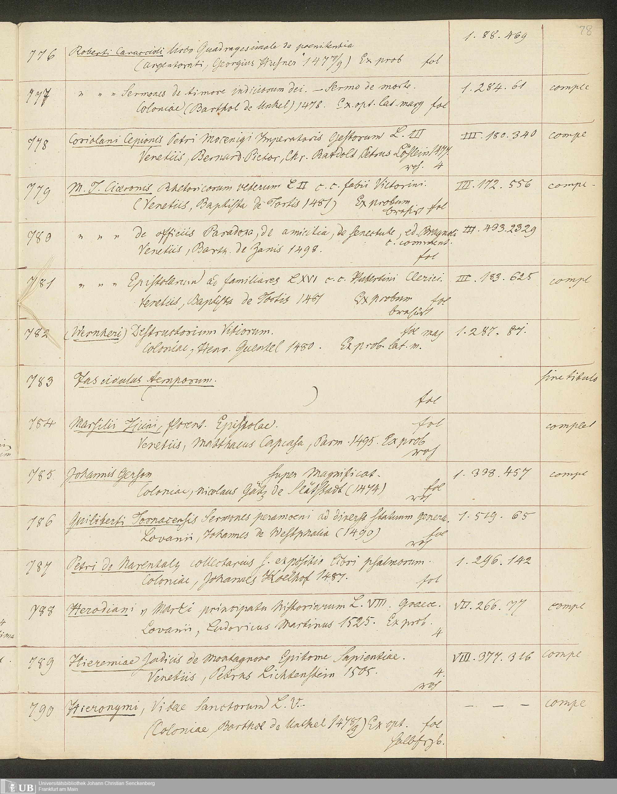 Ms. Ff. G. Kloß II.5.3 - Handschriftlicher Verkaufskatalog