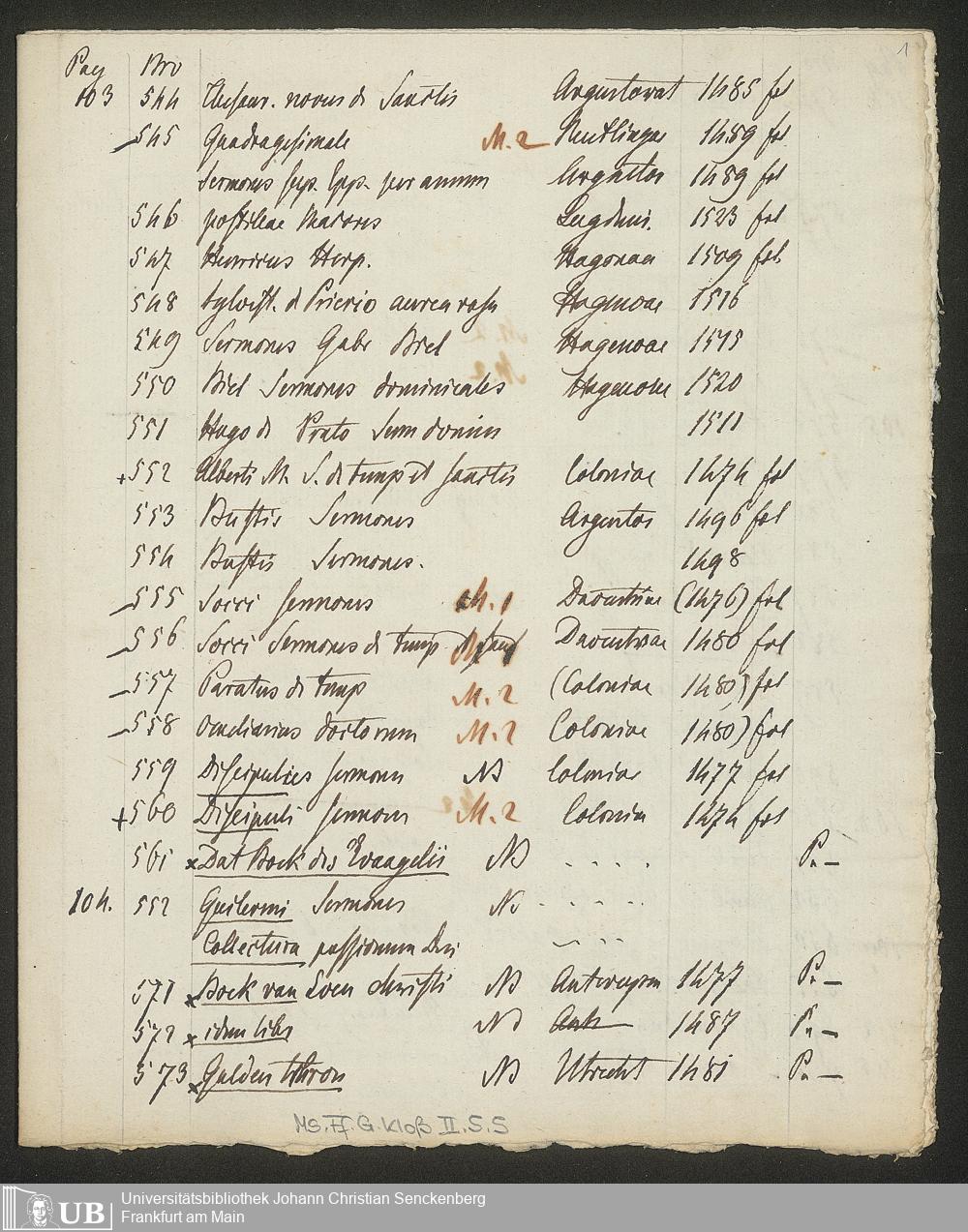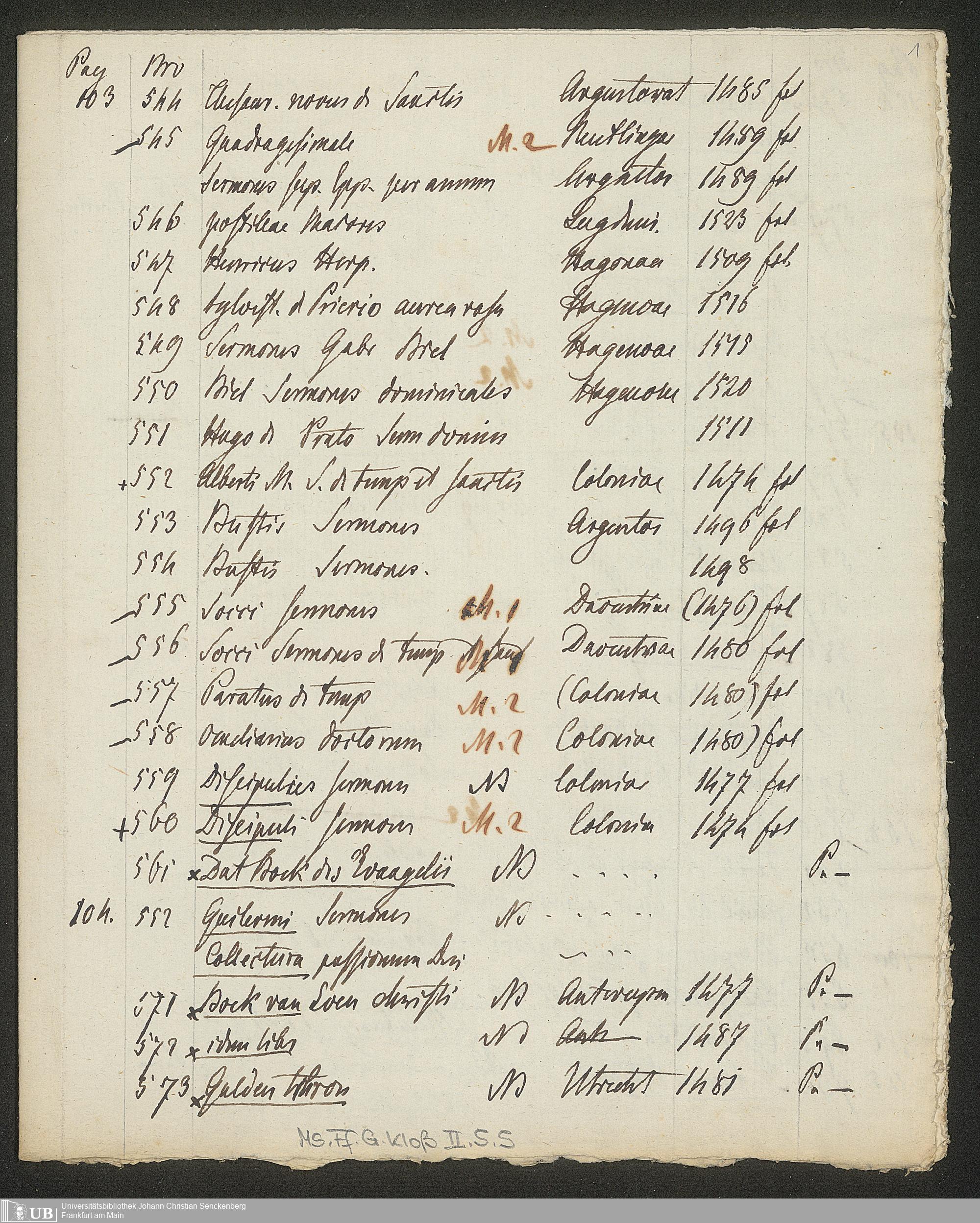 Ms. Ff. G. Kloß II.5.5 - Handschriftliche Auszüge aus Auktionskatalogen