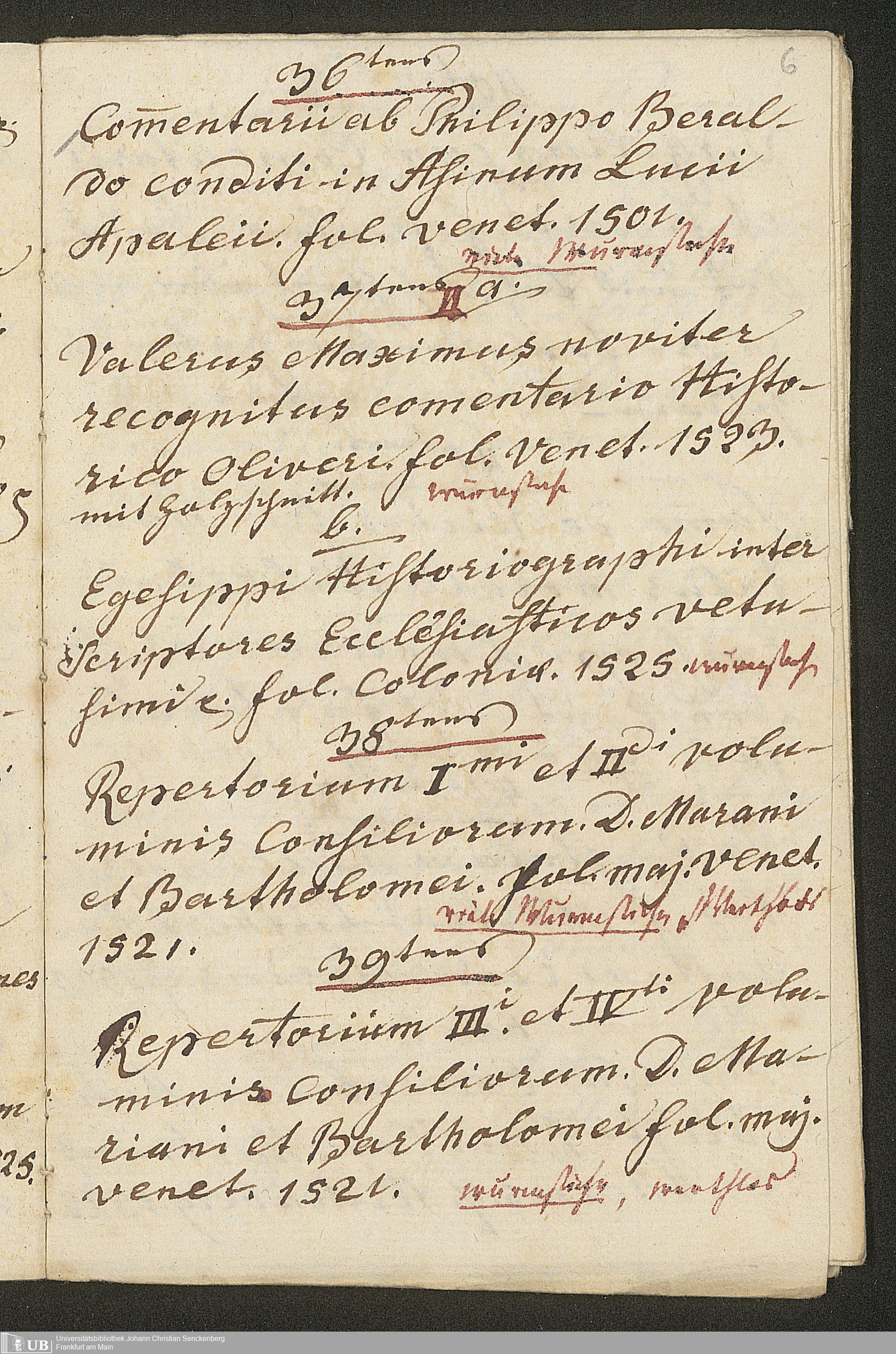 Ms. Ff. G. Kloß II.5.1 - Verzeichnis seltener Bücher