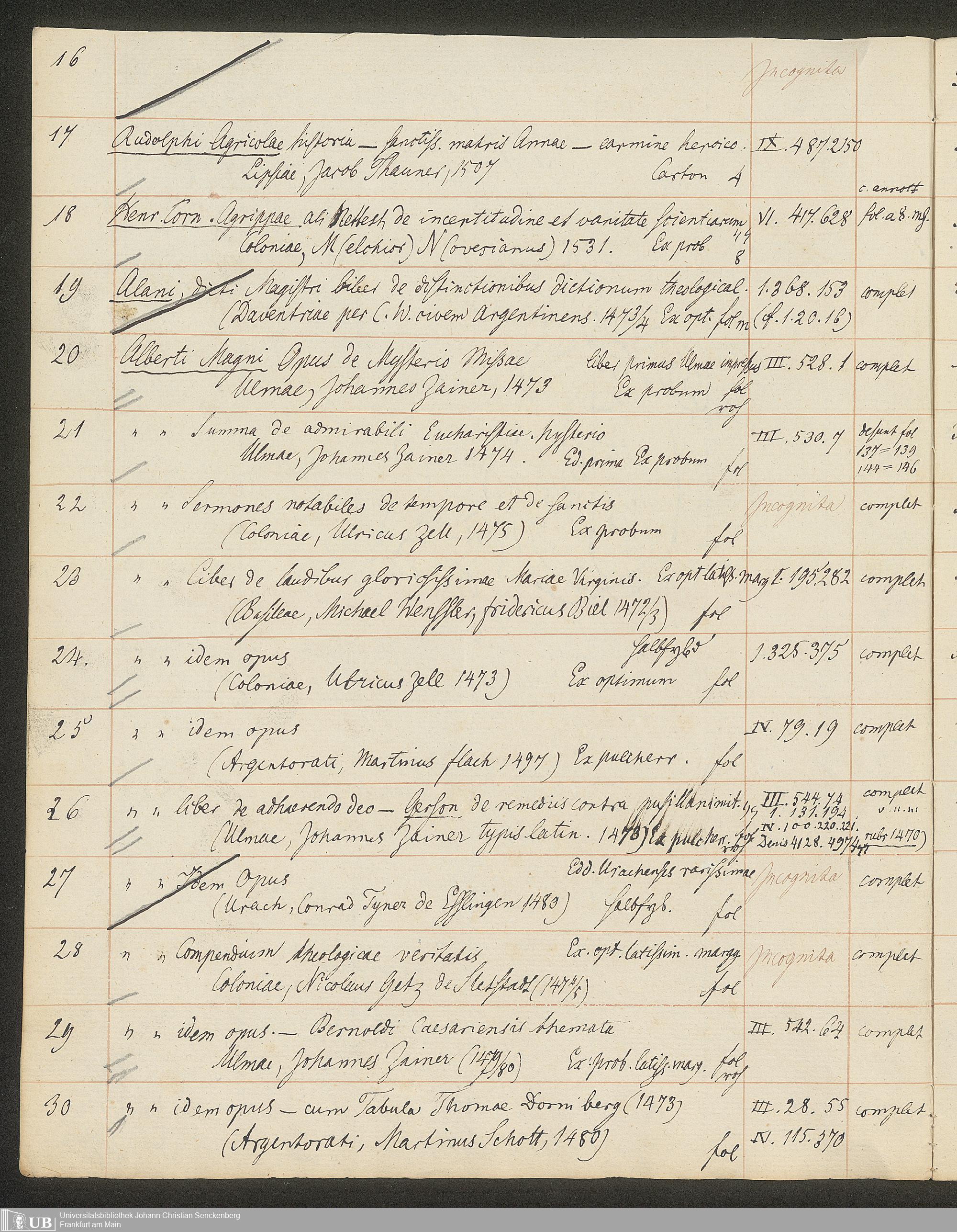 Ms. Ff. G. Kloß II.5.4 - Handschriftlicher Verkaufskatalog