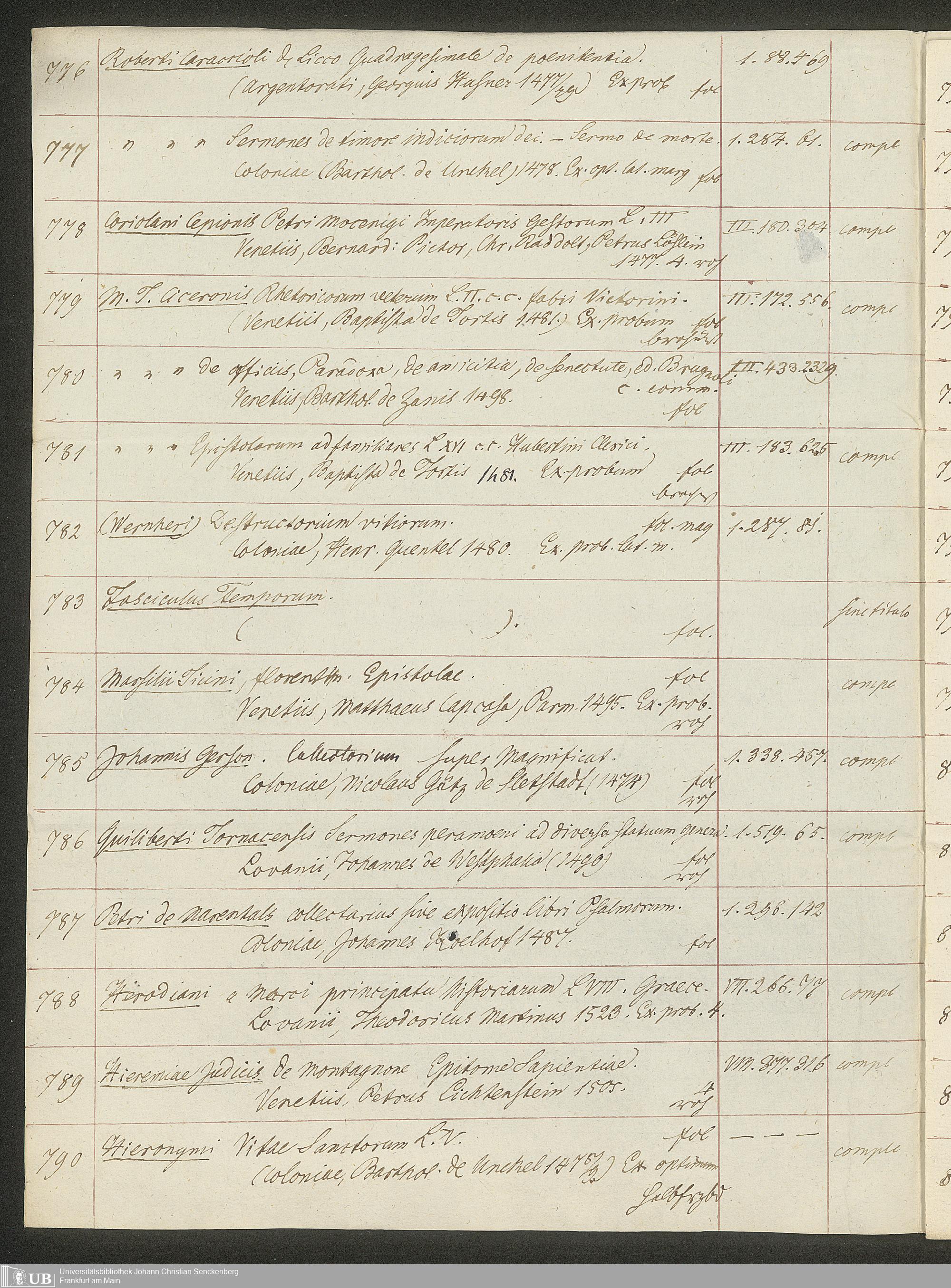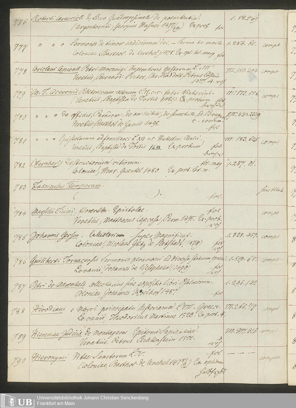 Ms. Ff. G. Kloß II.5.4 - Handschriftlicher Verkaufskatalog