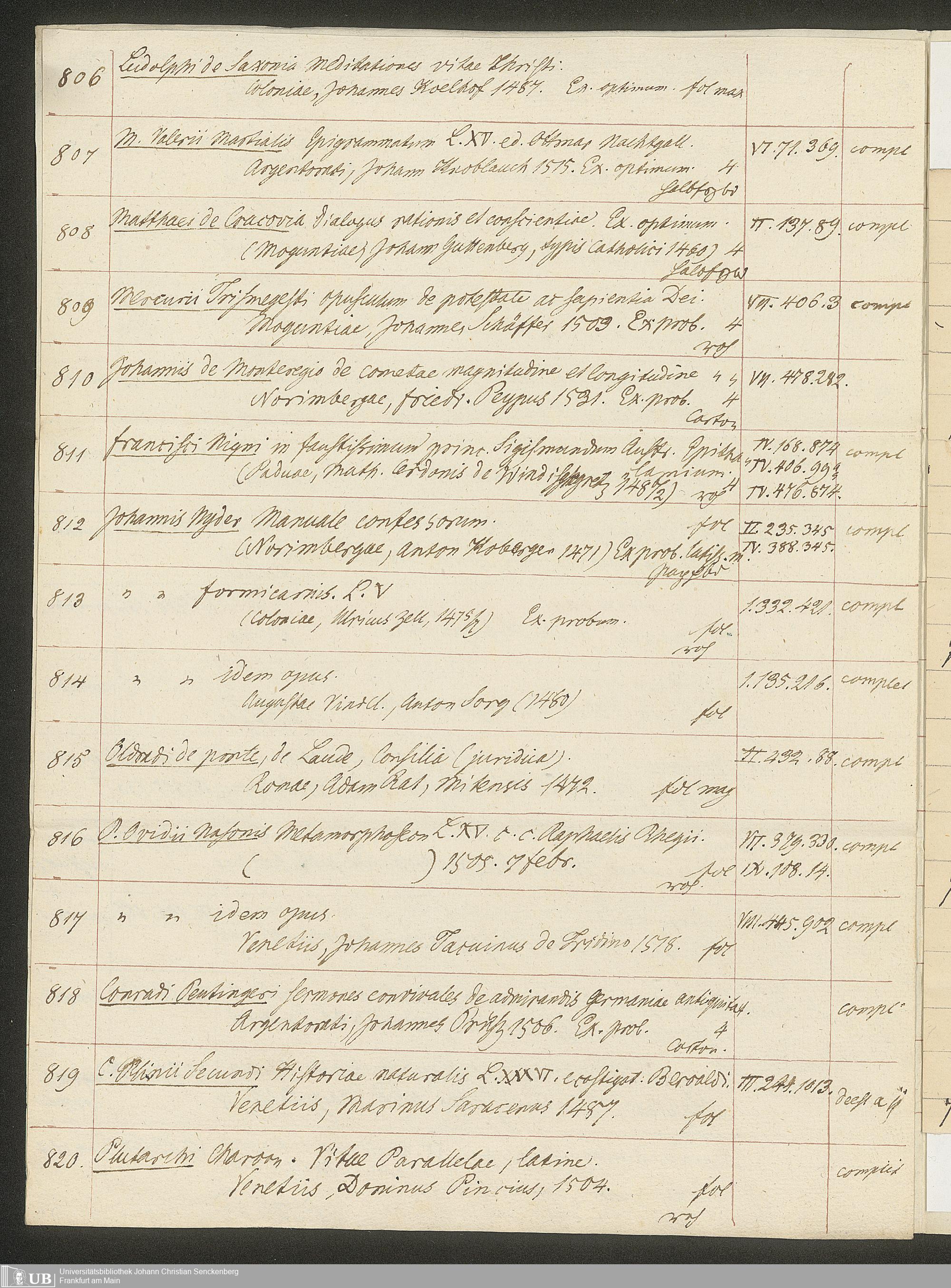 Ms. Ff. G. Kloß II.5.4 - Handschriftlicher Verkaufskatalog