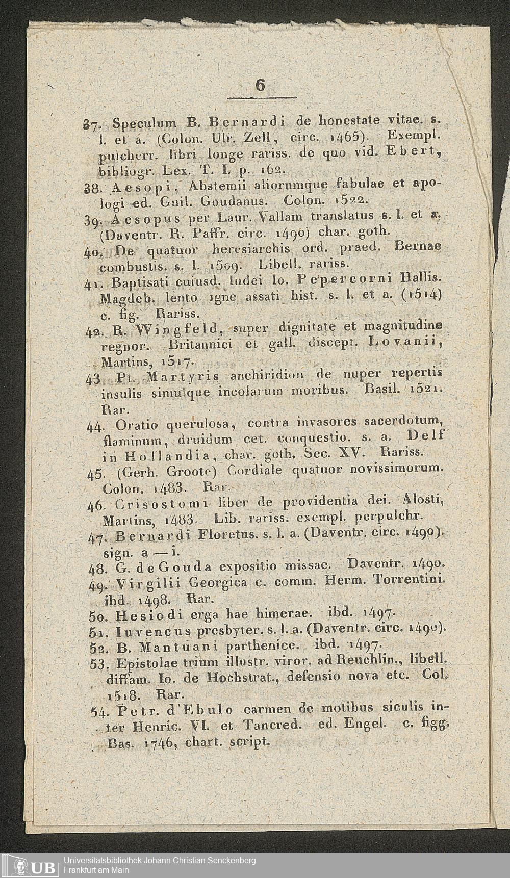 Ms. Ff. G. Kloß II.5.2.4 - Verzeichniss einer kleinen Sammlung höchst wichtiger und kostbarer Handschriften und Bücher, welche am 15ten Juni d.J. zu Hamm in der Grafschaft Mark gegen gleich baare Zahlung öffentlich versteigert werden sollen