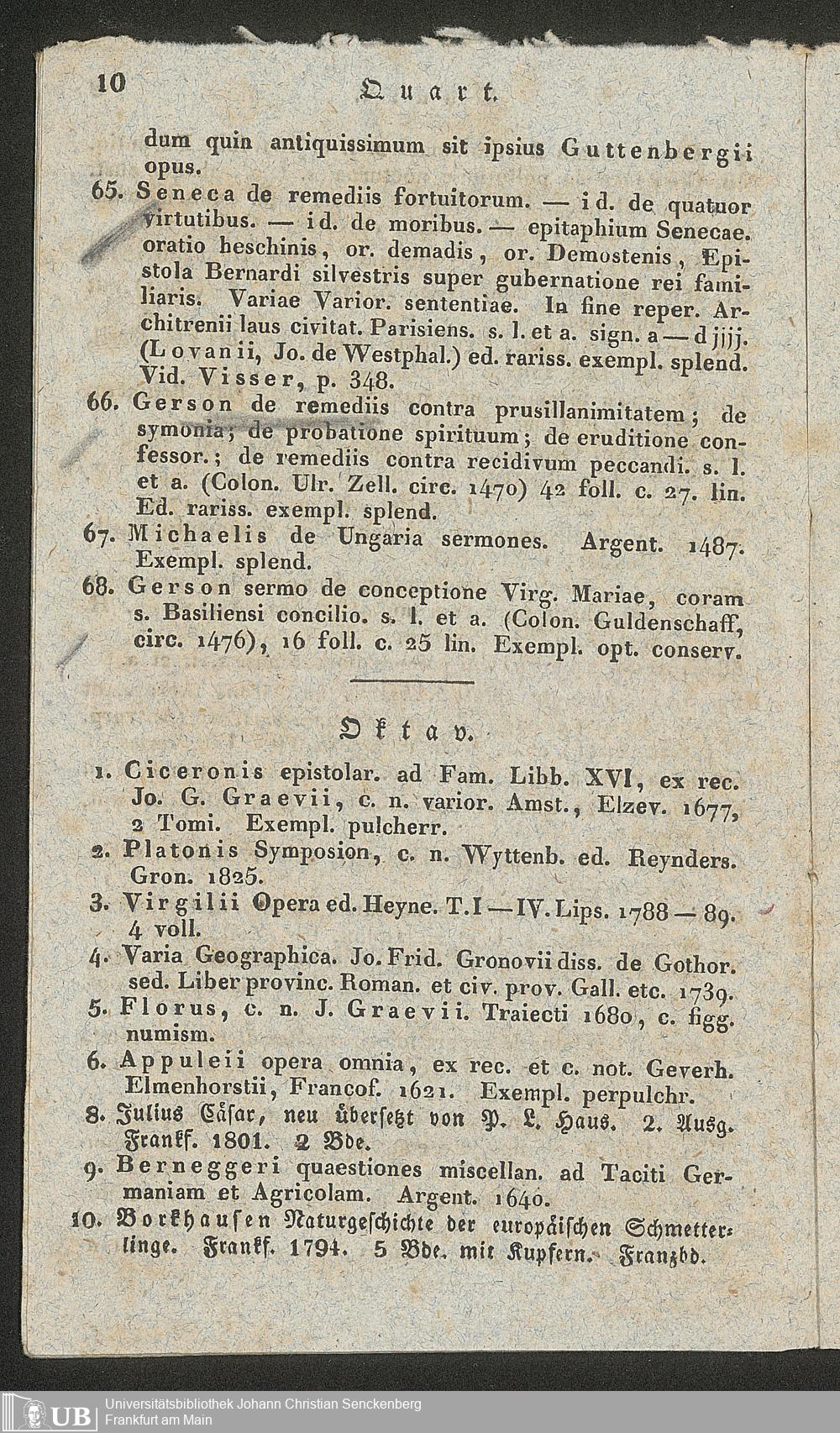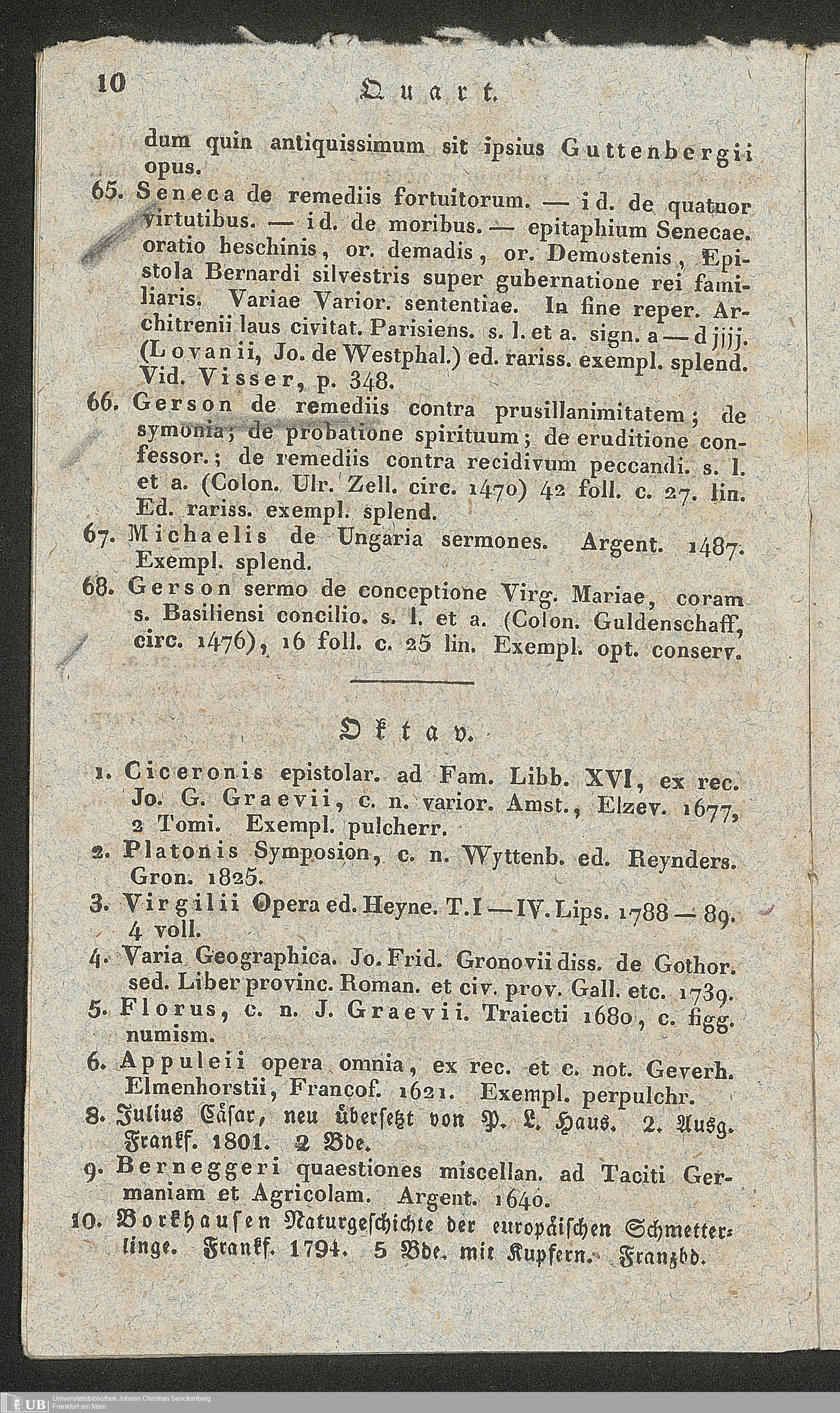 Ms. Ff. G. Kloß II.5.2.5 - Verzeichniss einer Sammlung werthvoller und zum Theil höchst seltener Bücher, welche durch den damit beauftragten Taxator Fuhrmann zu Hamm in der Grafschaft Mark am 21. März 1834 gegen gleich baare Zahlung meistbietend verkauft werden