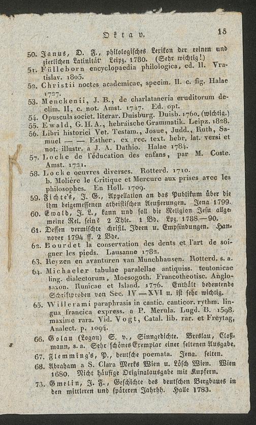 Ms. Ff. G. Kloß II.5.2.5 - Verzeichniss einer Sammlung werthvoller und zum Theil höchst seltener Bücher, welche durch den damit beauftragten Taxator Fuhrmann zu Hamm in der Grafschaft Mark am 21. März 1834 gegen gleich baare Zahlung meistbietend verkauft werden